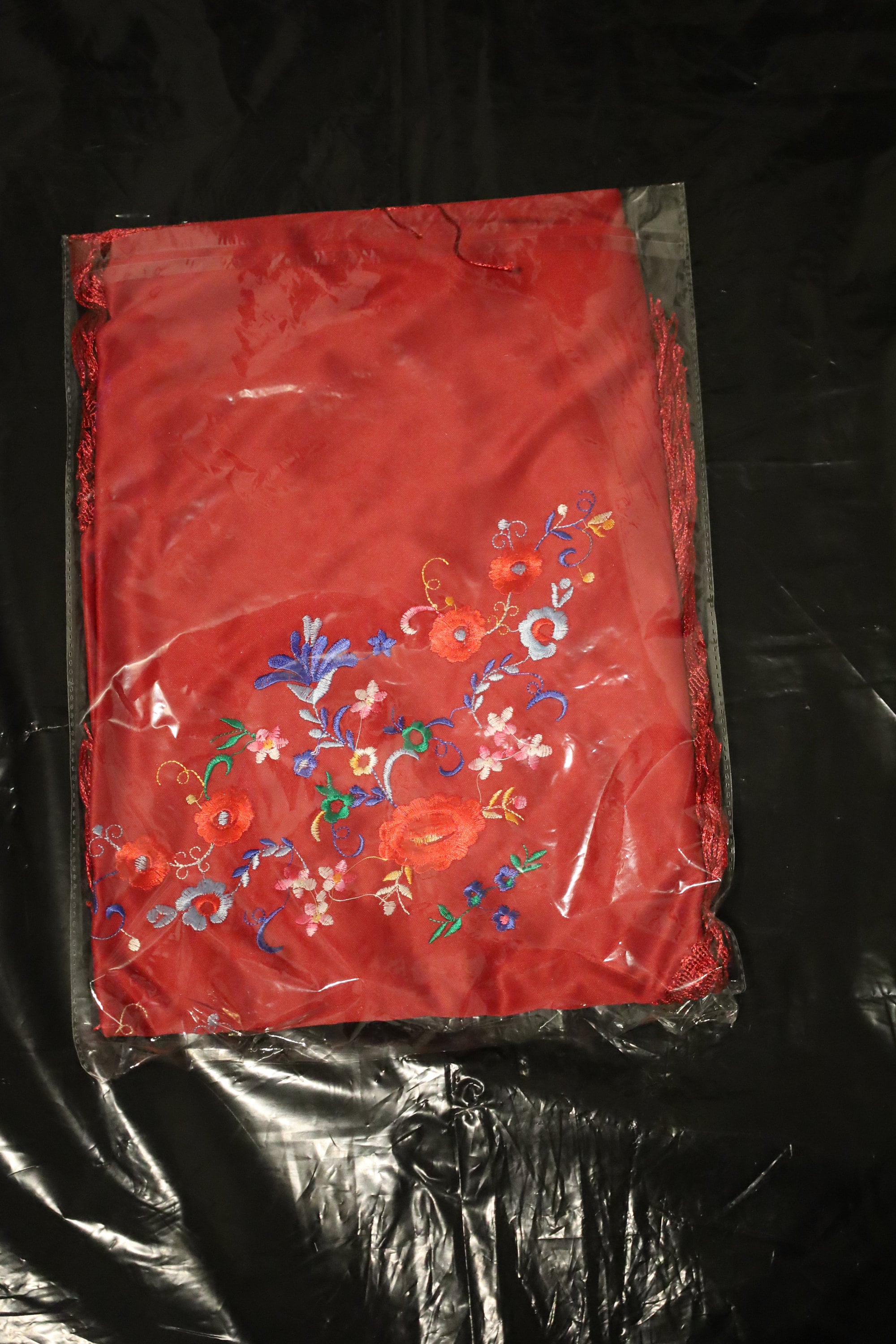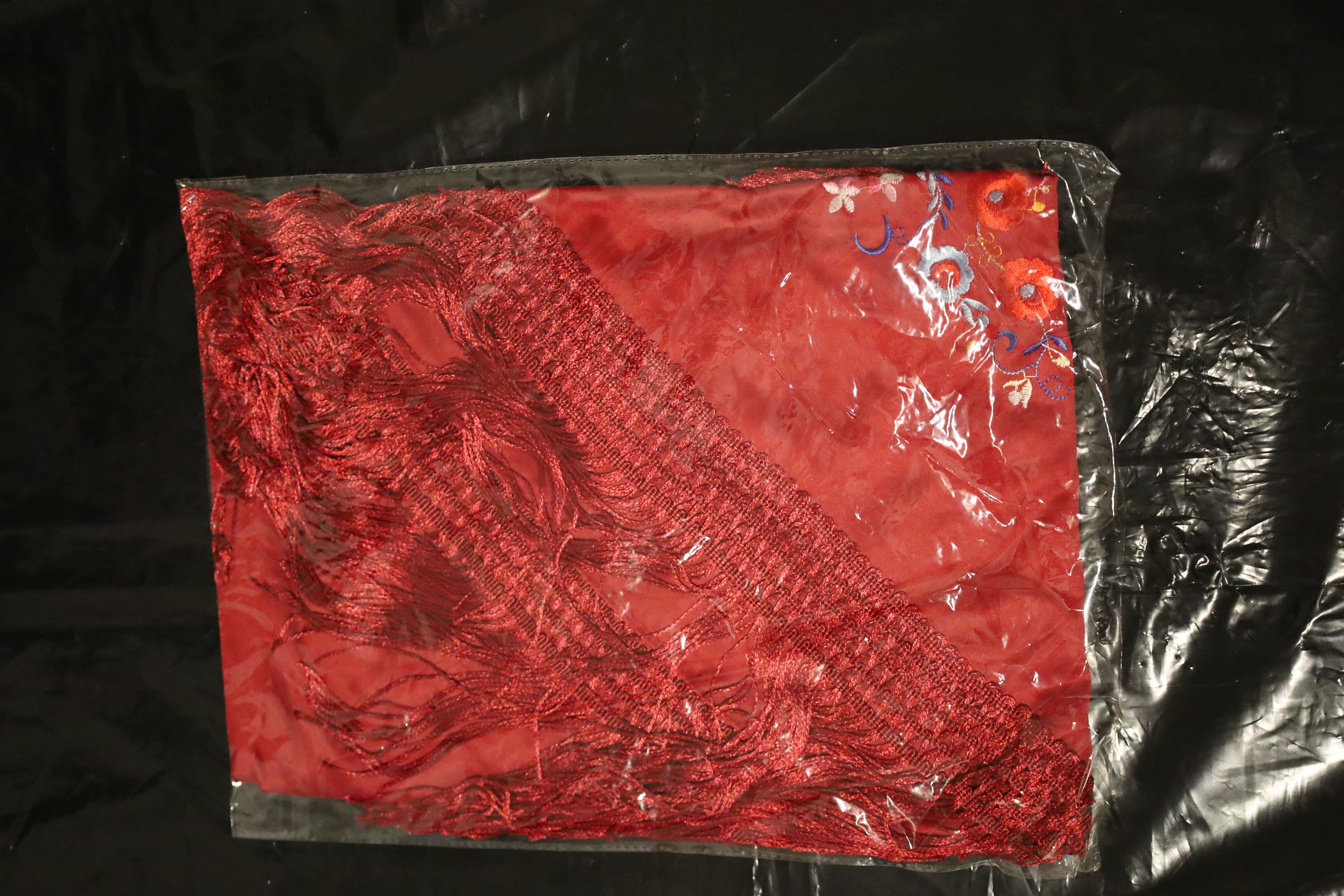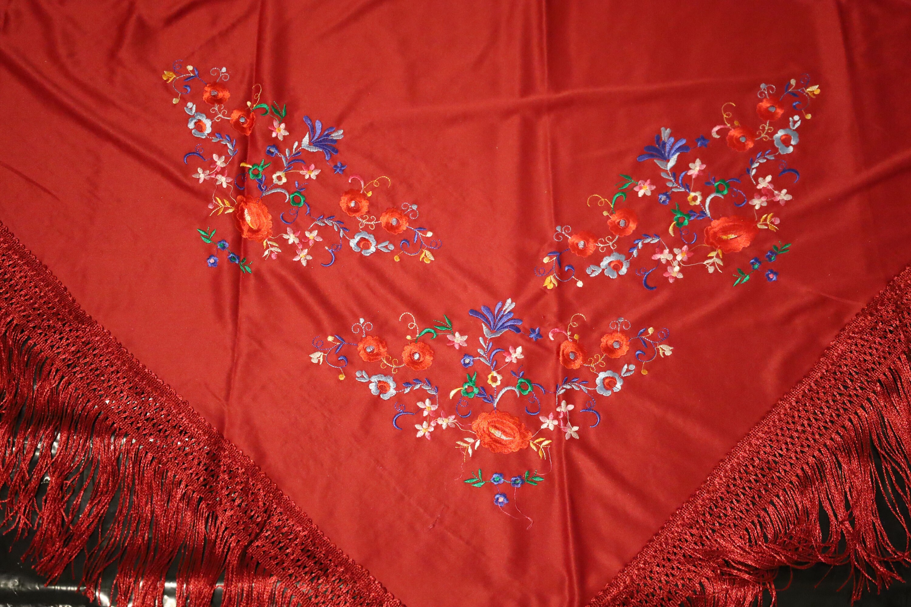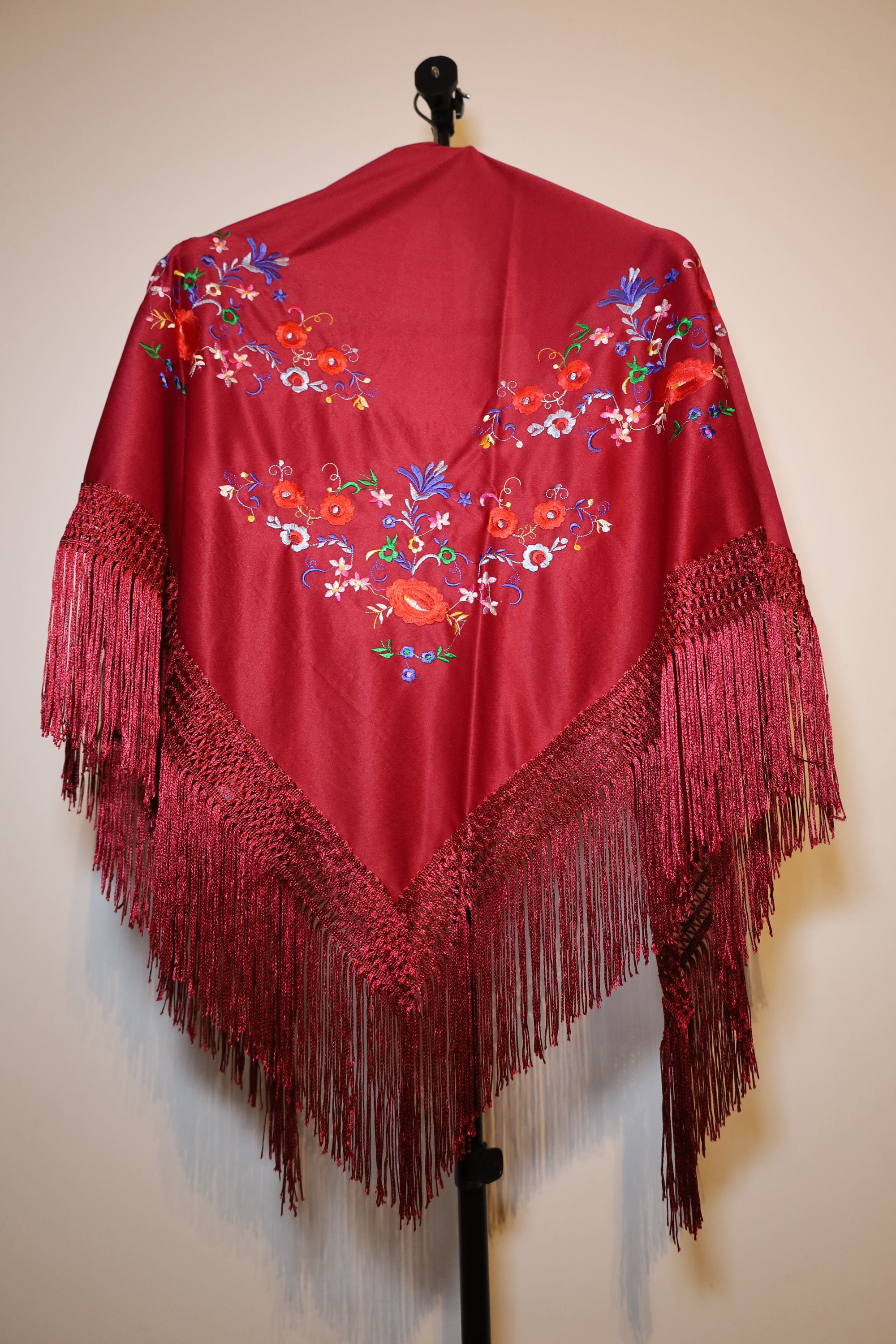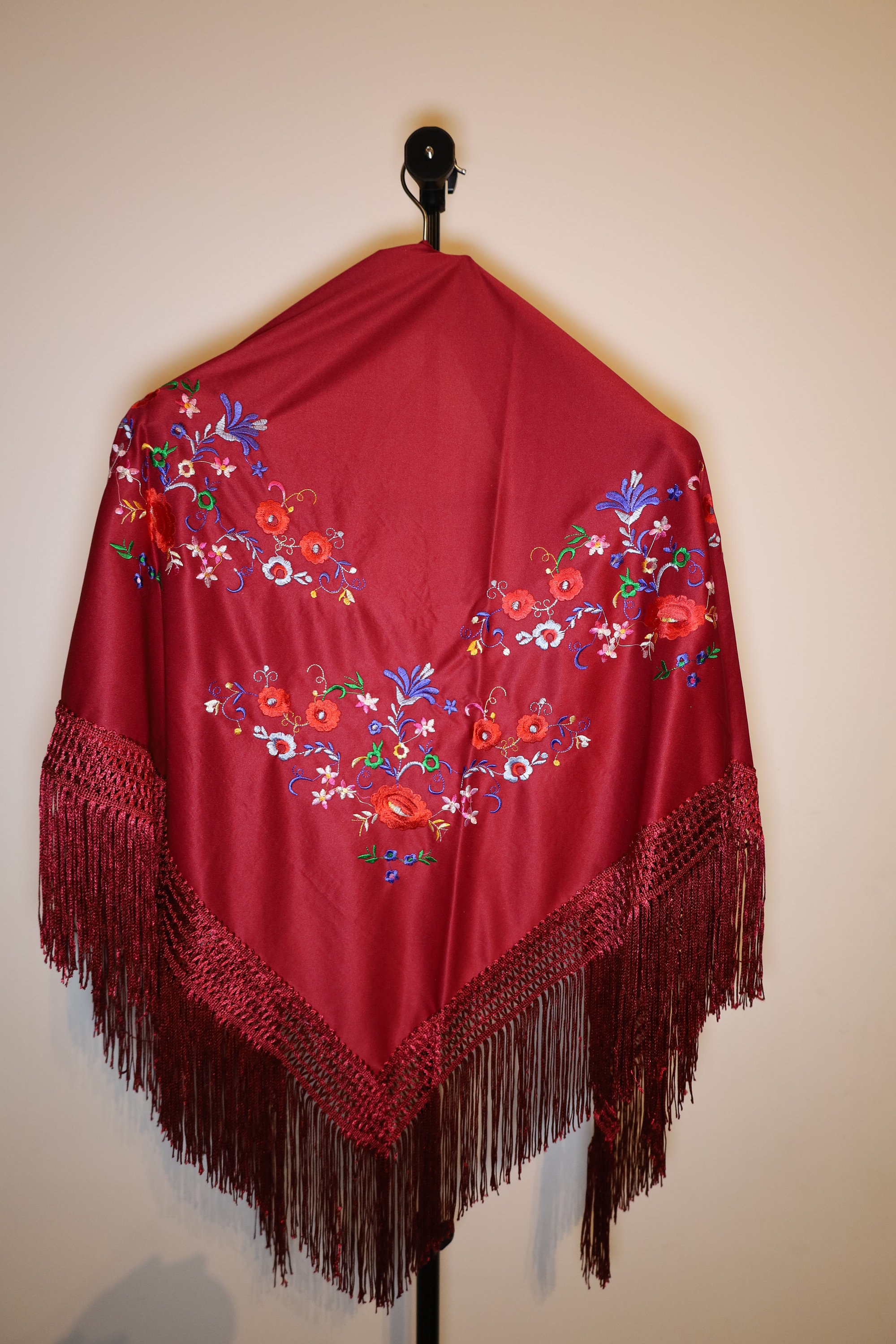 Andalusian elegance – Hand-embroidered garnet red shawl