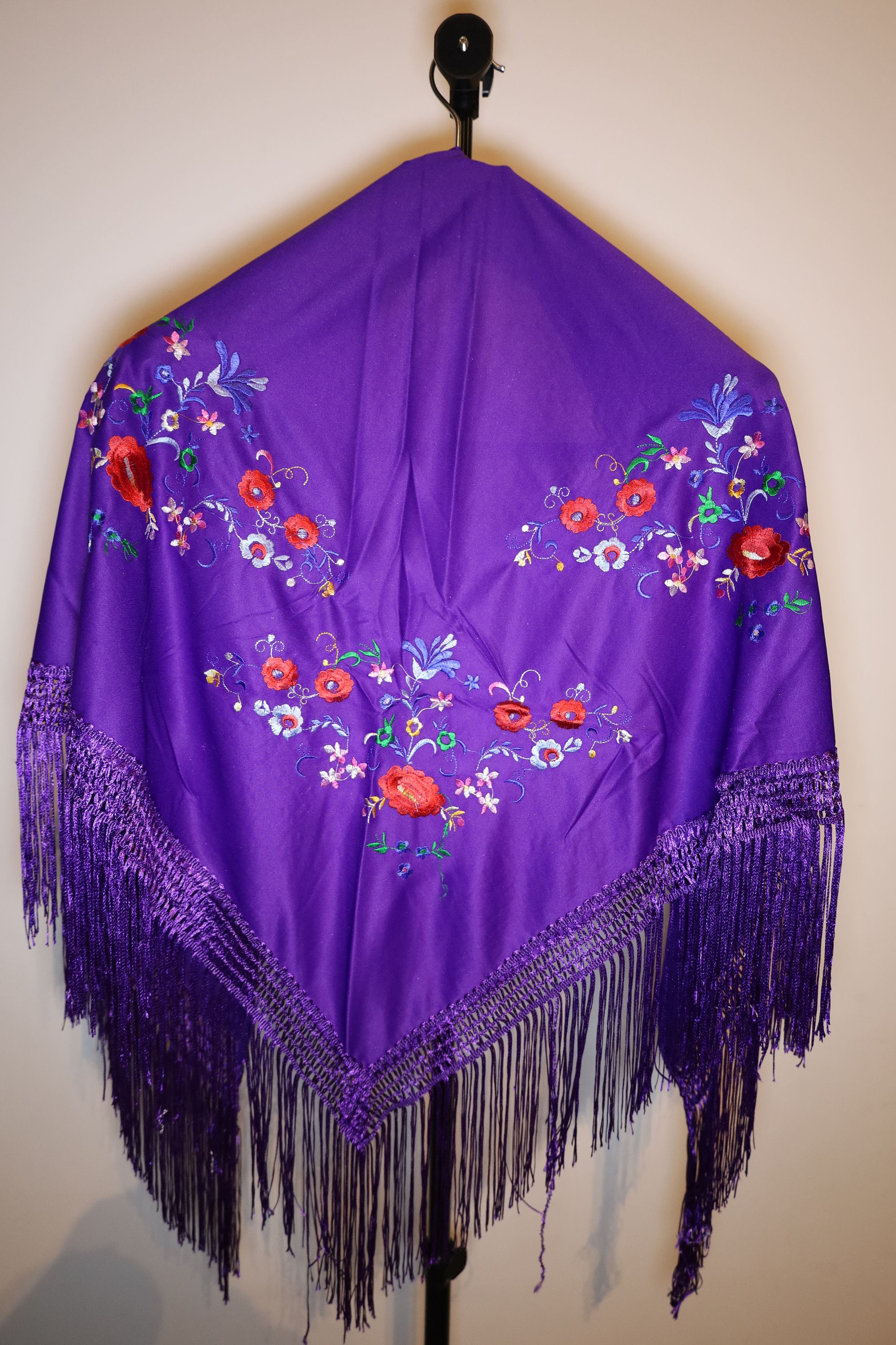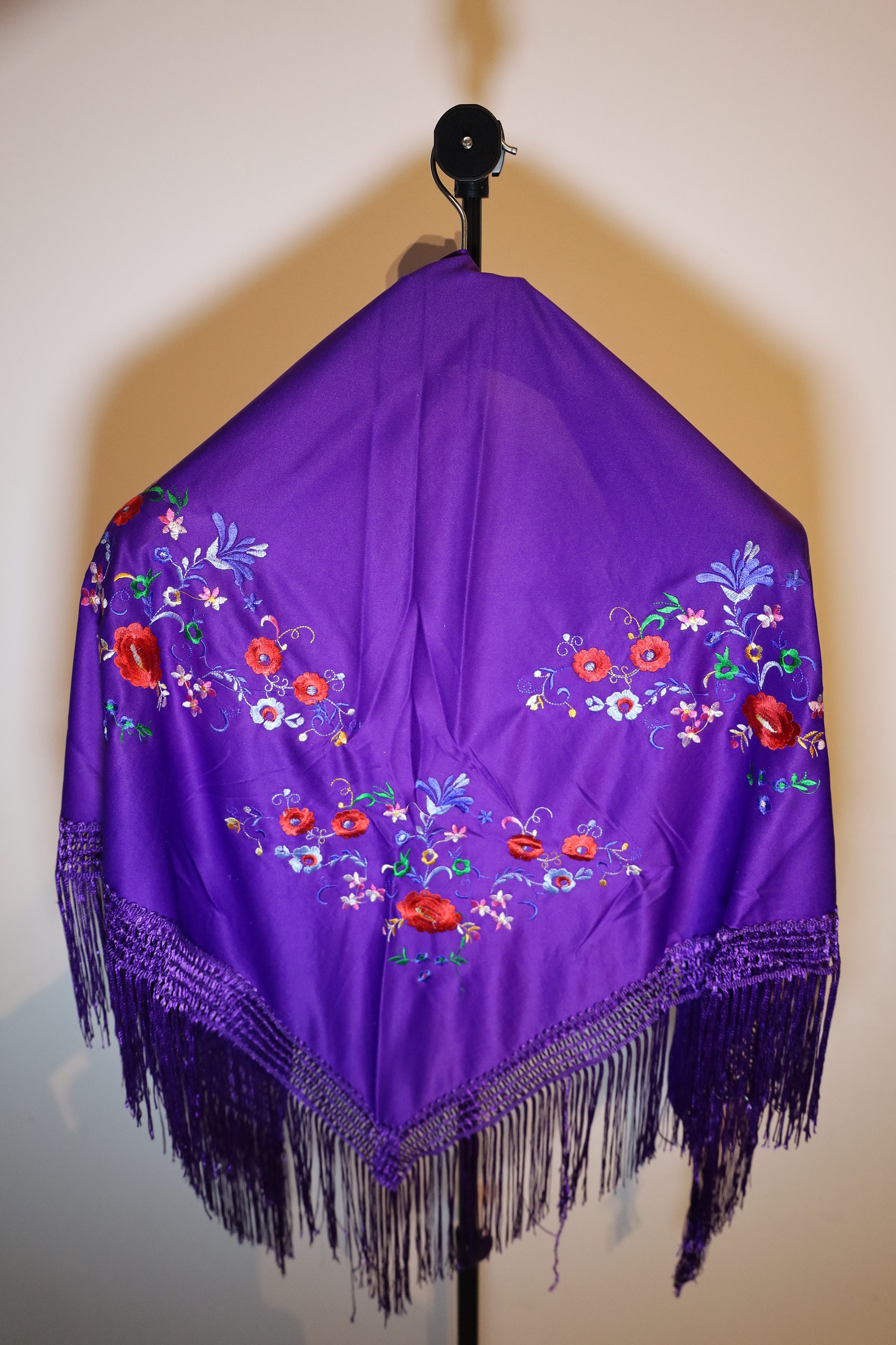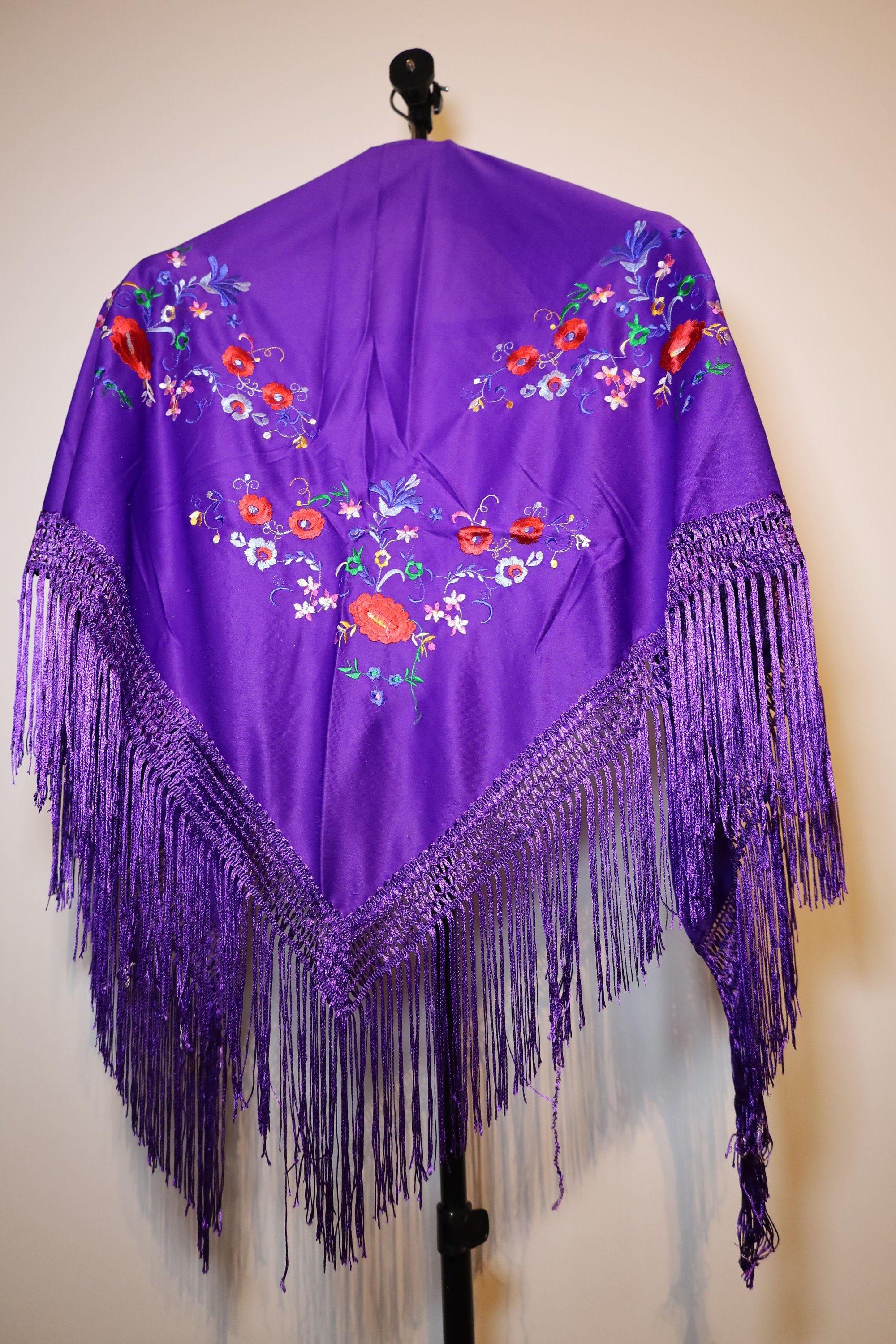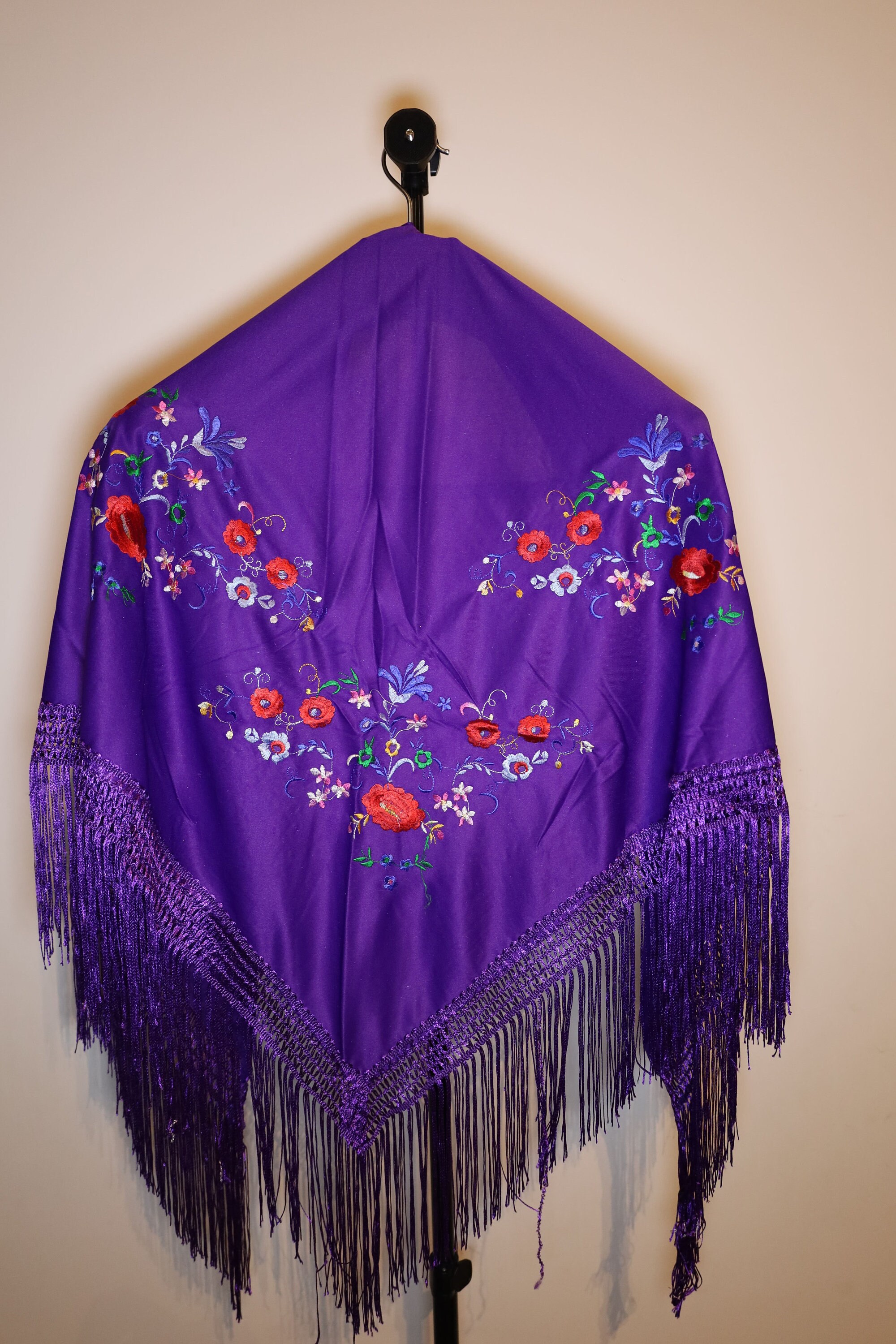 ✨ Traditional Purple Shawl - Multicolored Floral Embroidery - Unique Handmade Piece ✨
