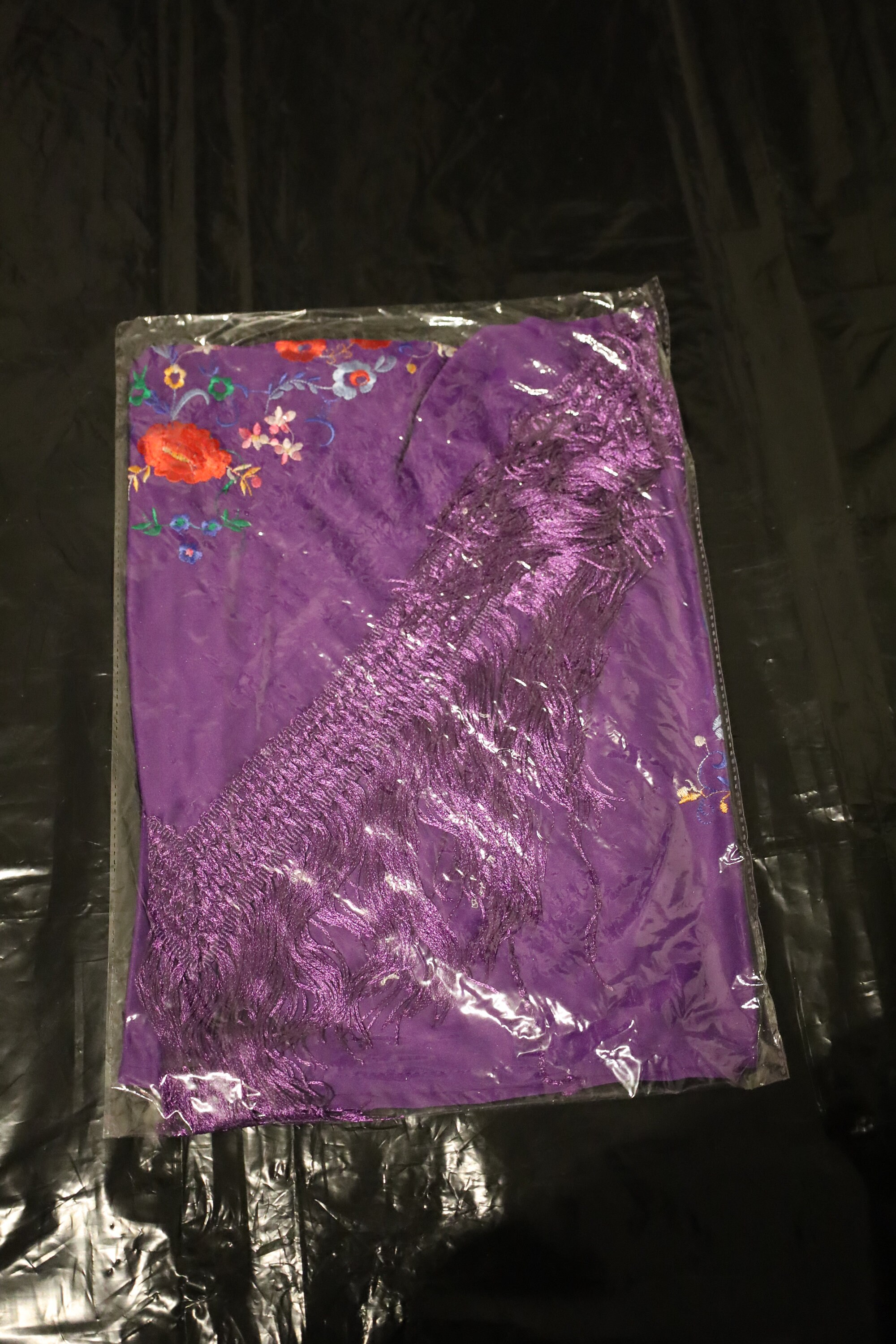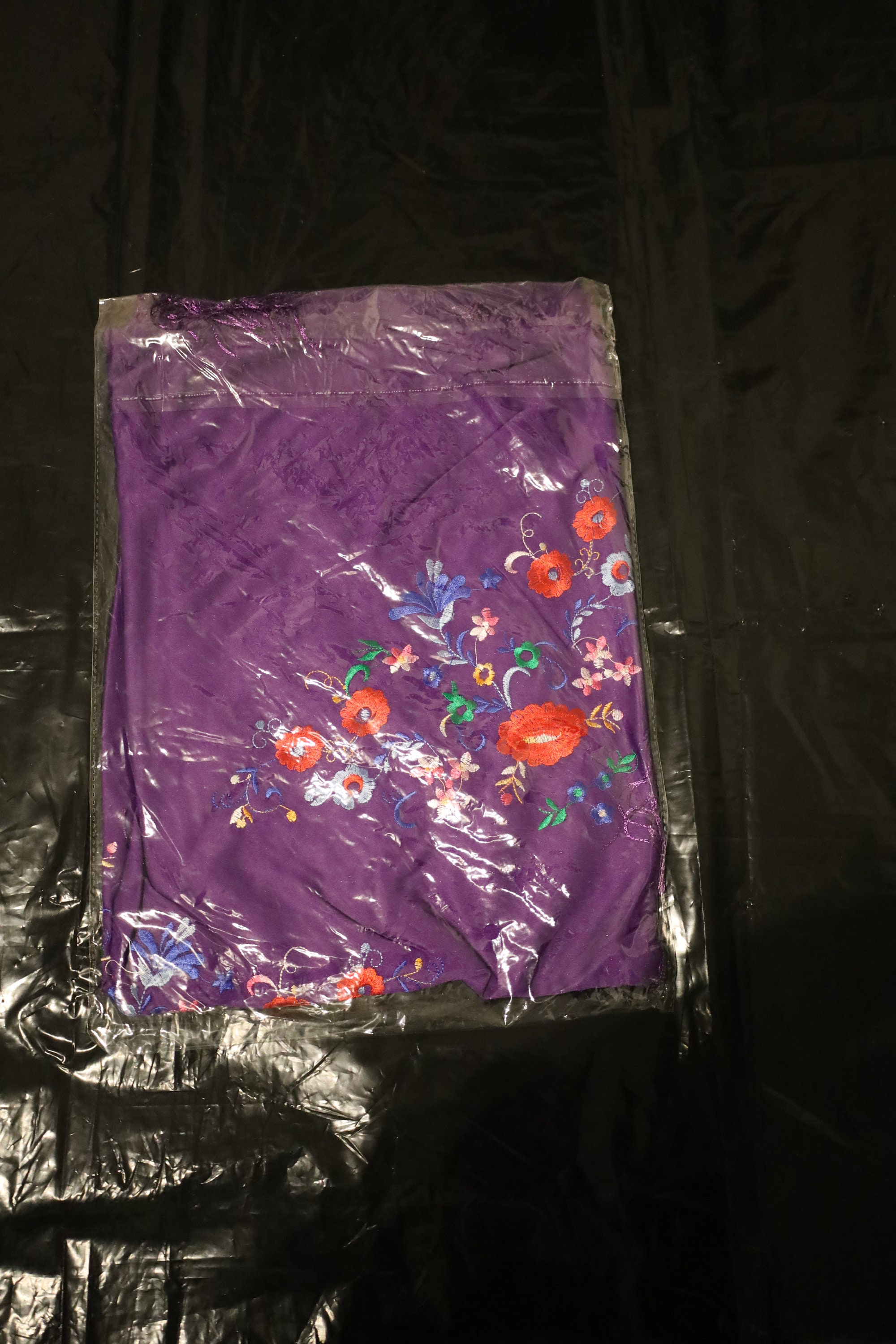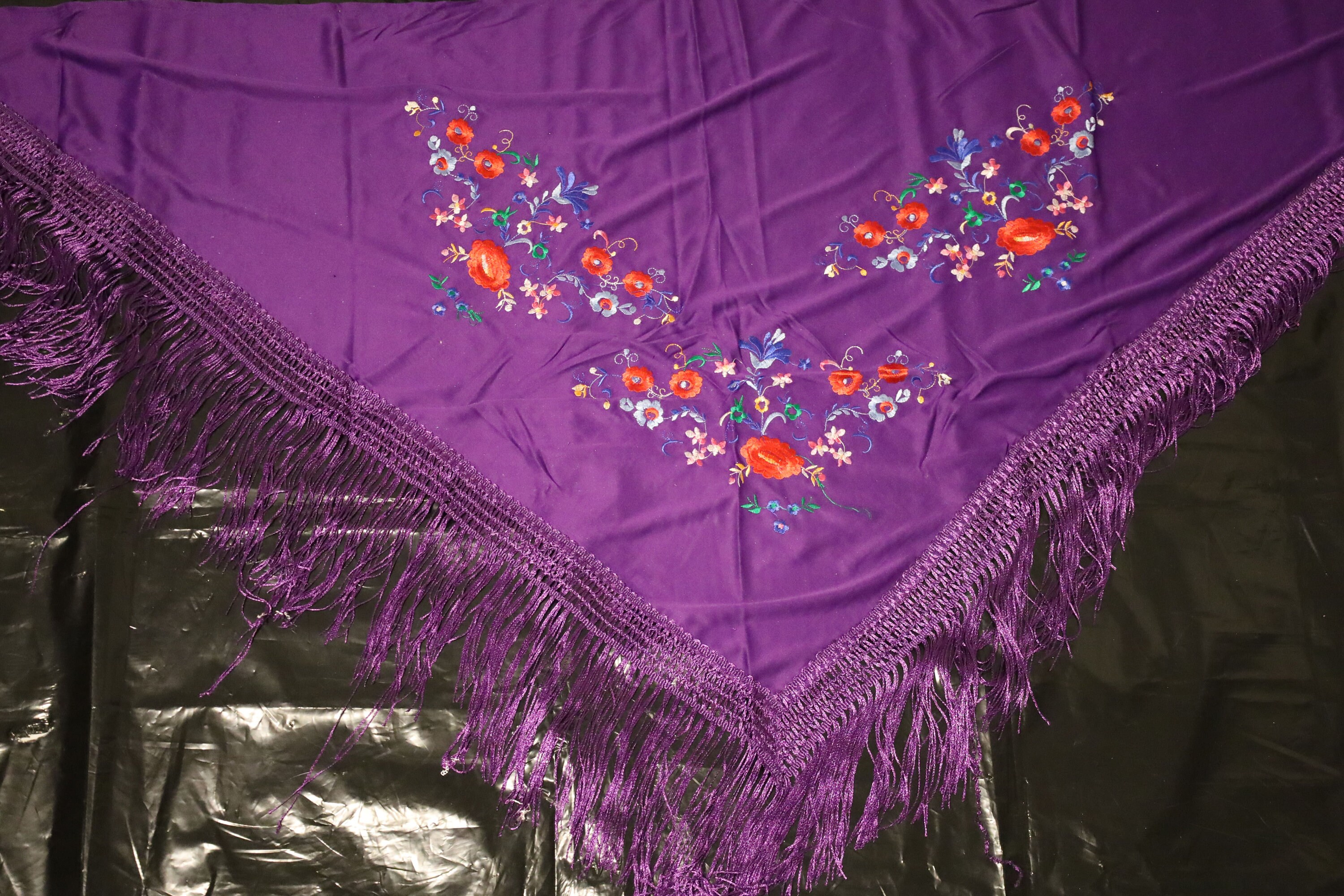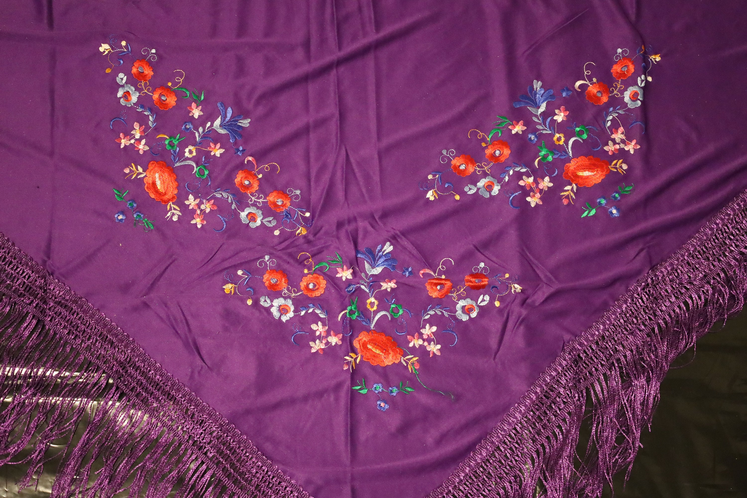 ✨ Traditional Purple Shawl - Multicolored Floral Embroidery - Unique Handmade Piece ✨