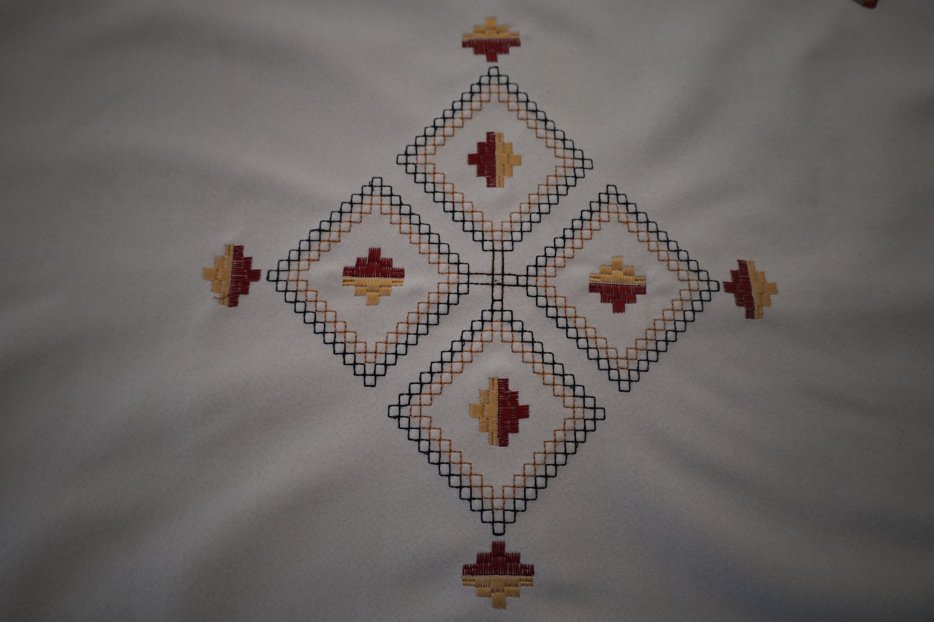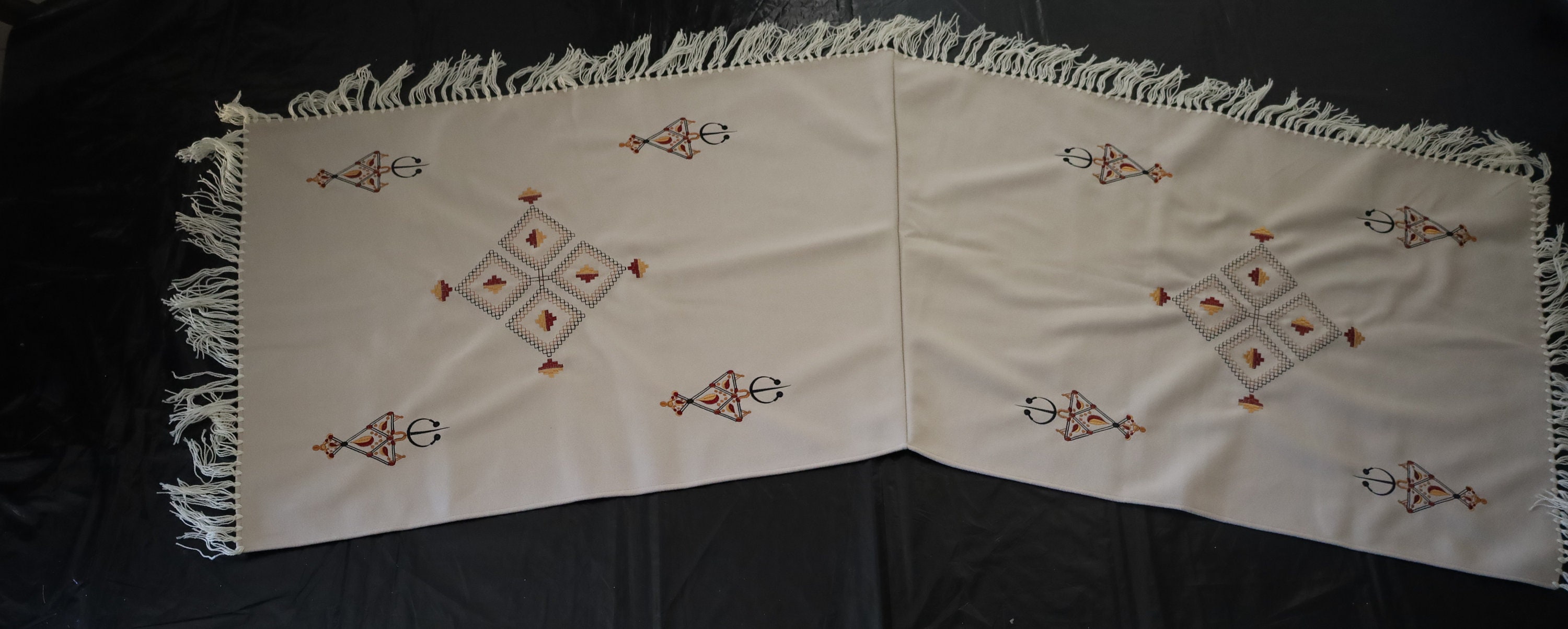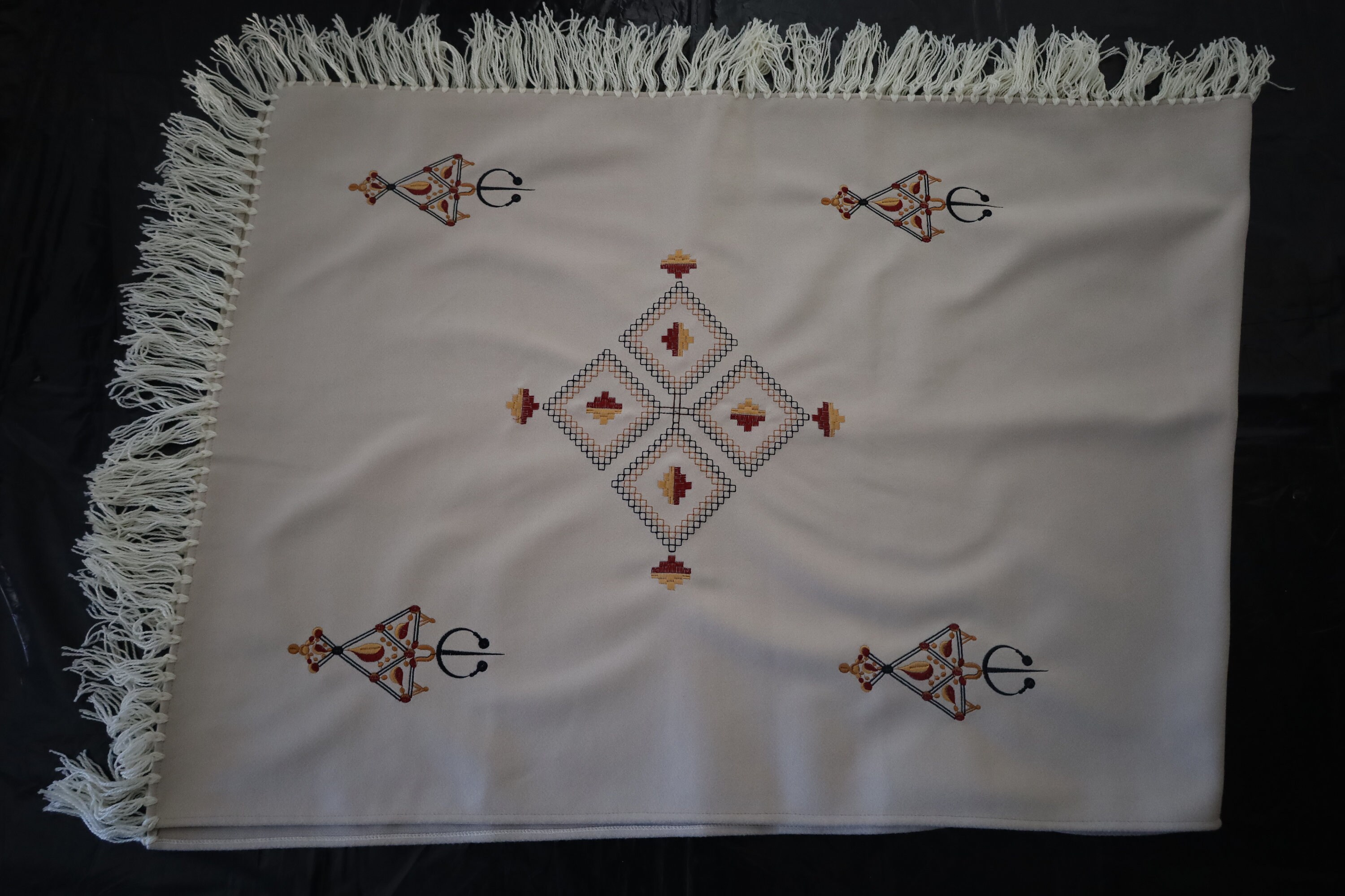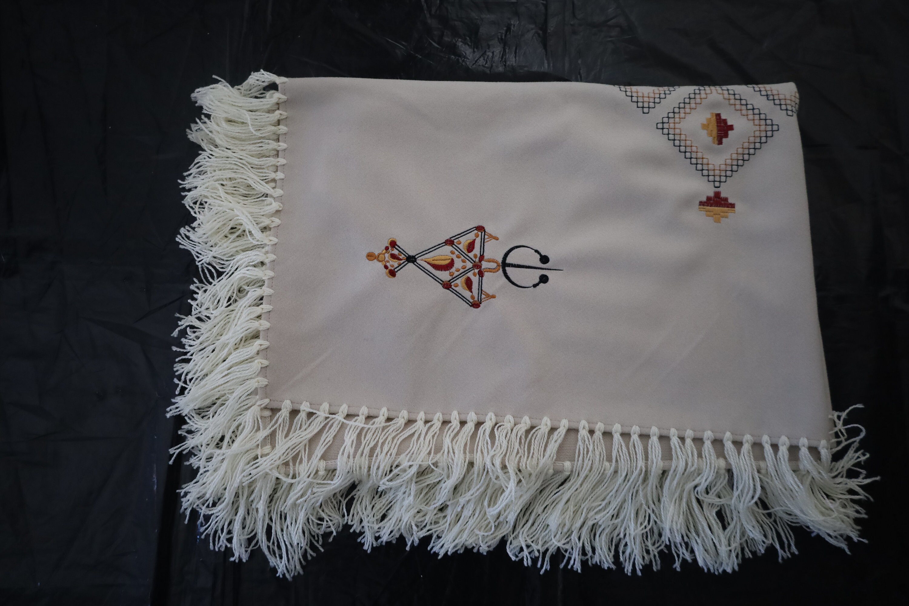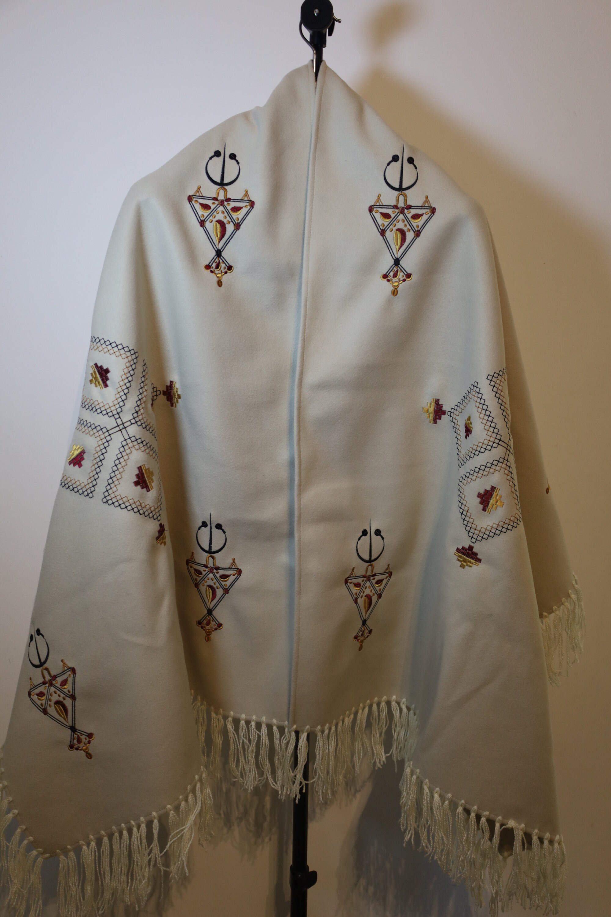 🧵 Authentic craftsmanship: Woven from a thick, soft fabric in natural sand tones, this traditional poncho is adorned with hand-embroidered geometric Berber motifs, rich in symbolism and history. The delicate embroidery in black, red, yellow, and ochre tells the ancestral stories of a people proud of their identity.