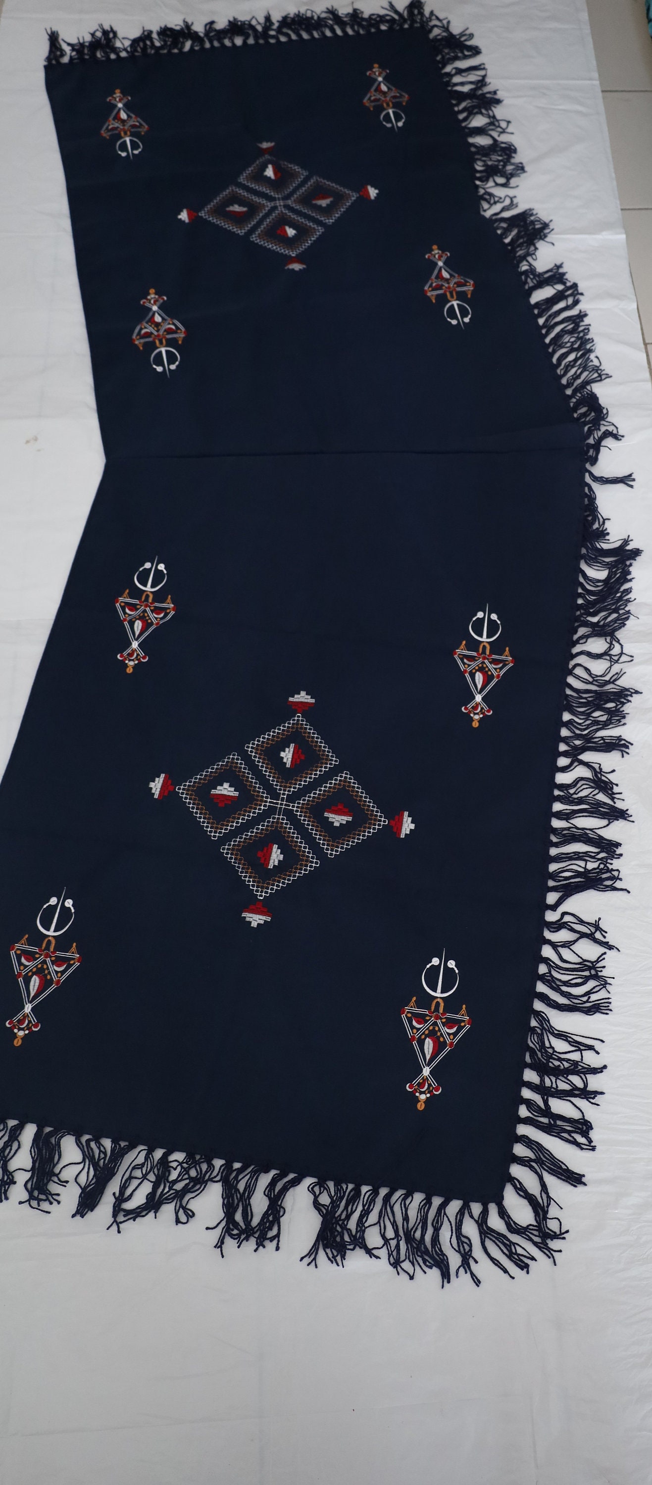 Handcrafted poncho made by women in the Mzab Valley in Ghardaïa. Unique piece.