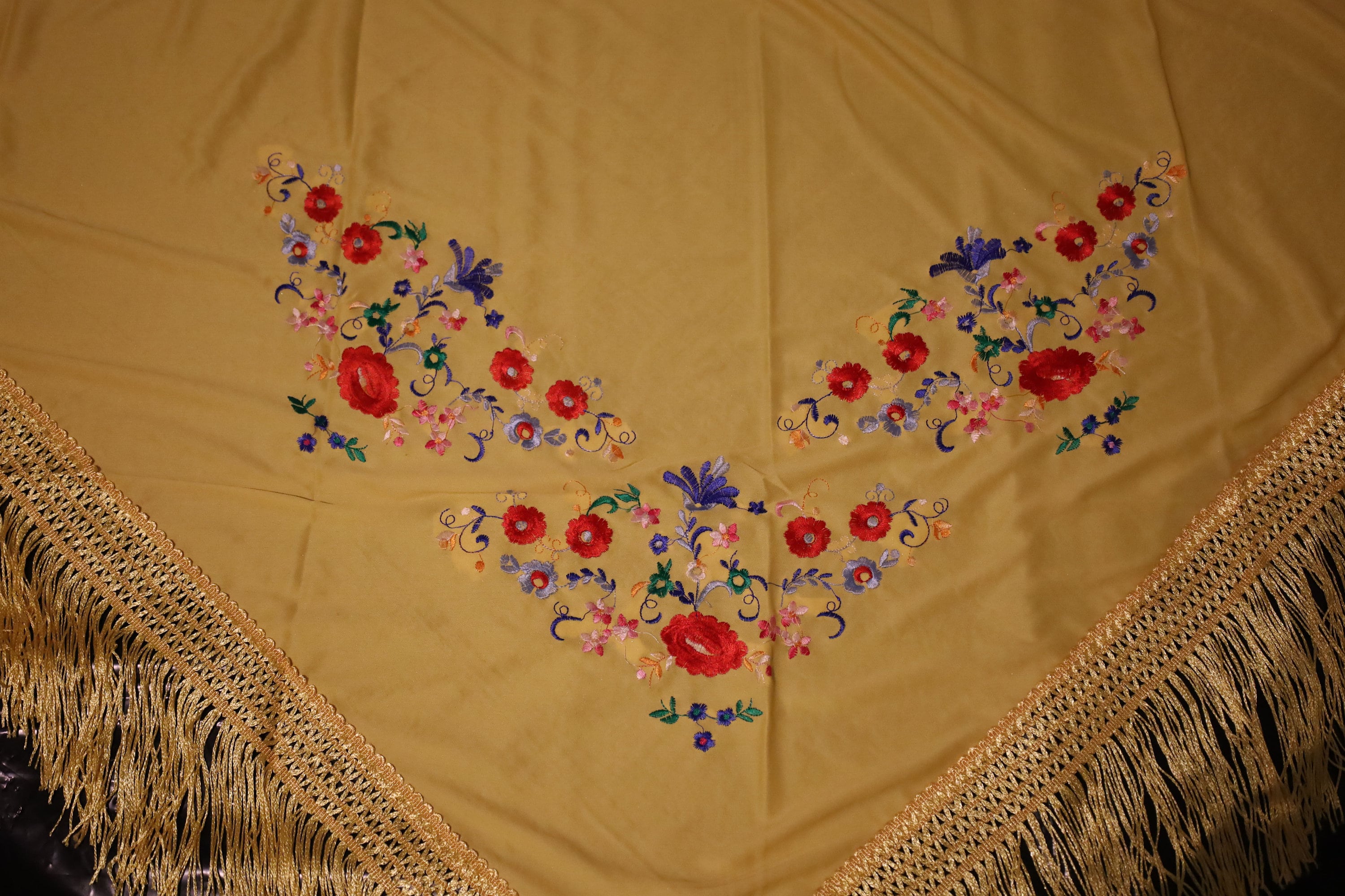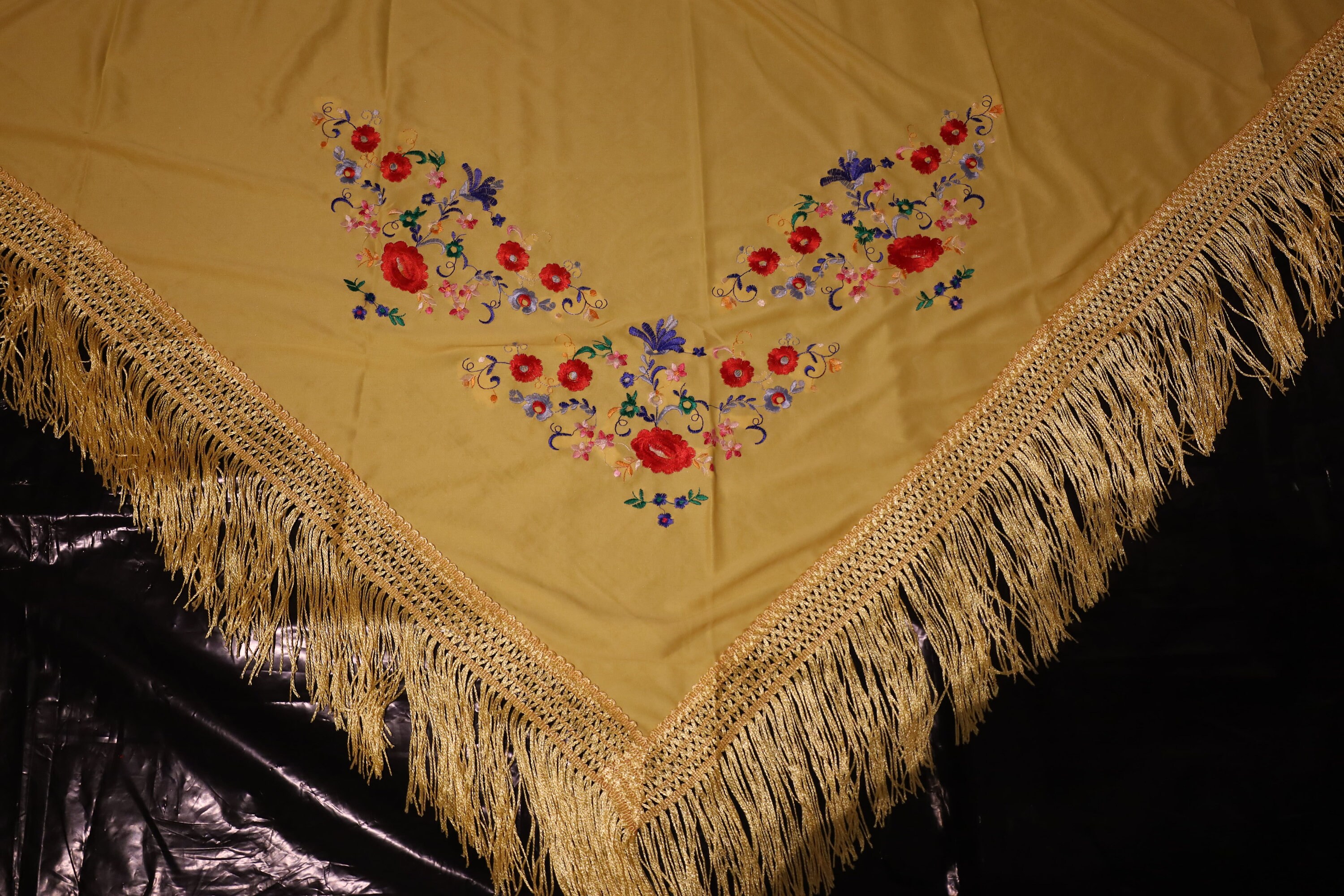 Be captivated by the timeless elegance of this sumptuous handcrafted Spanish shawl, a true masterpiece of embroidery and Andalusian tradition. Ideal for flamenco enthusiasts, textile art collectors, or anyone seeking a unique piece, this shawl is an ode to color, refinement, and Iberian culture.