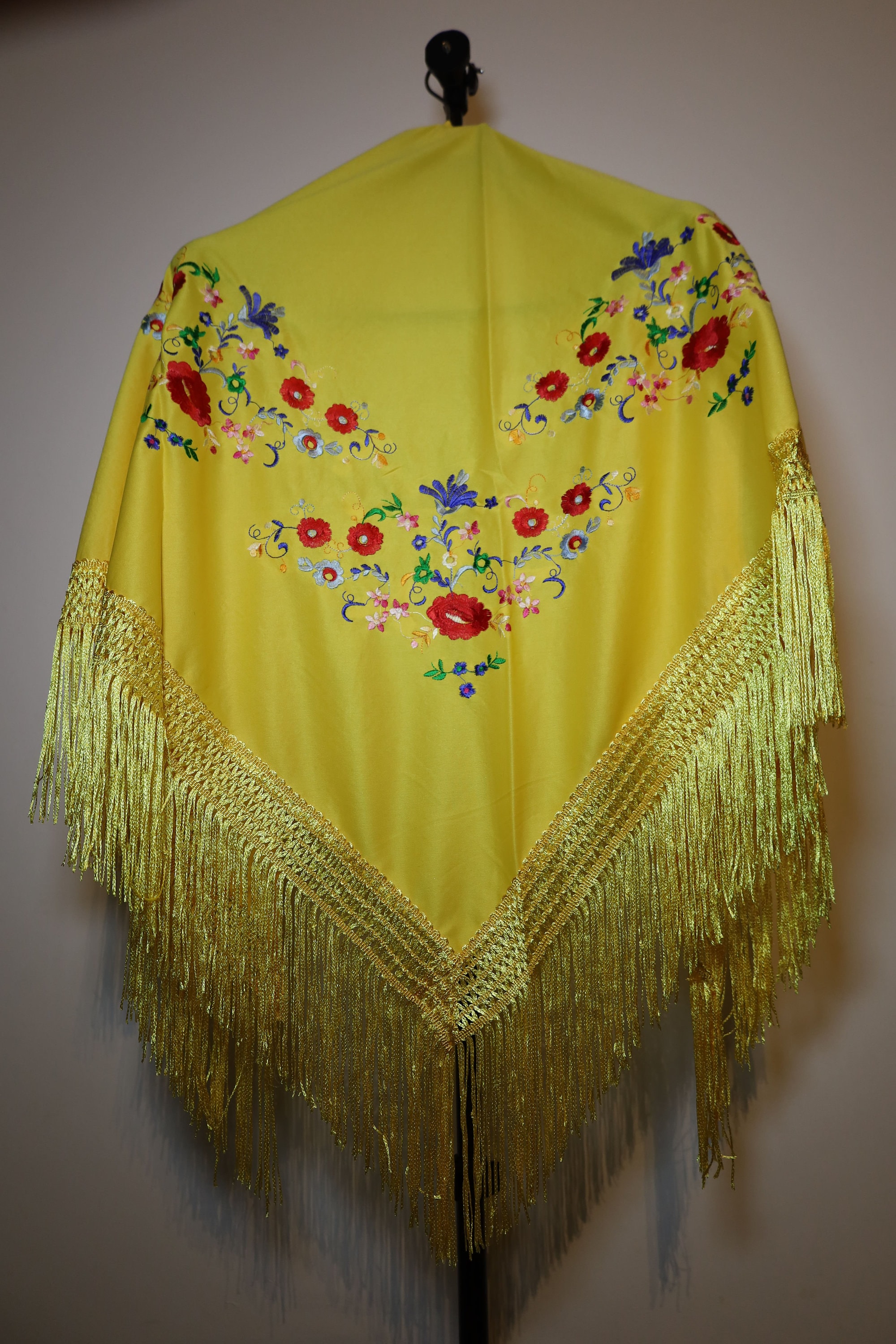 Traditional Spanish Hand-Embroidered Shawl – Bright Sunshine Yellow