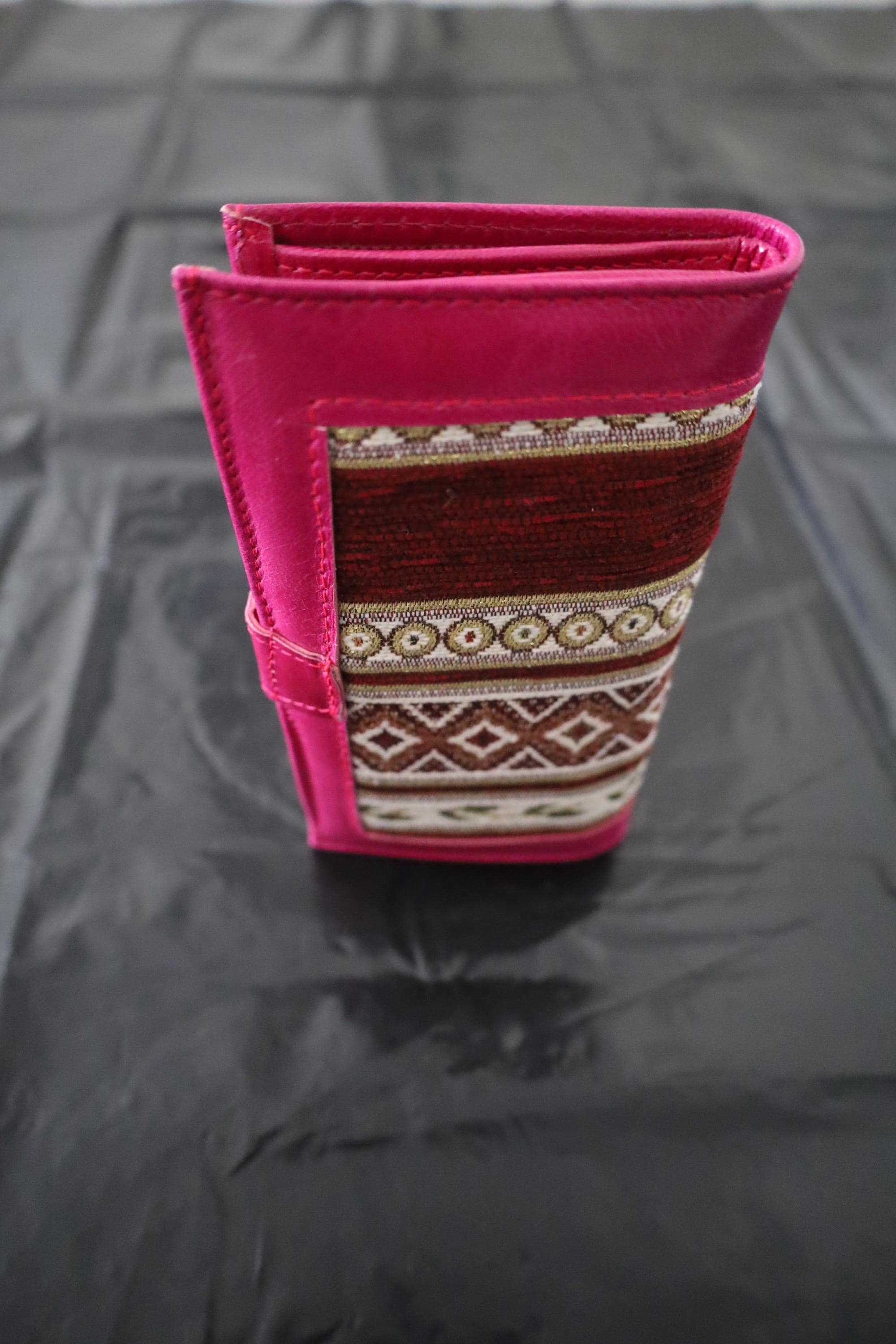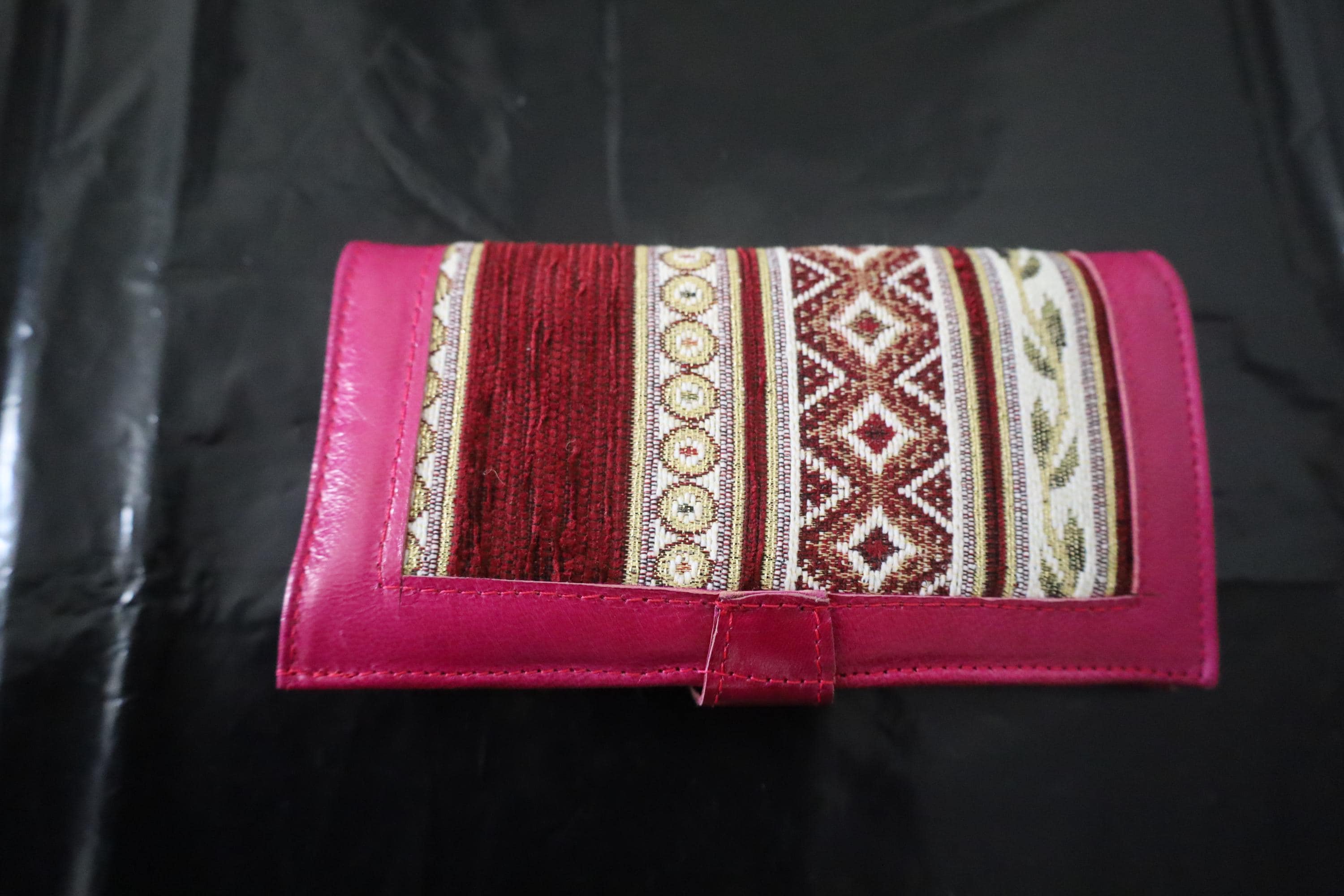 Handcrafted wallet made by women in Mzab in Ghardaïa in Algeria. It is decorated with pretty patterns.