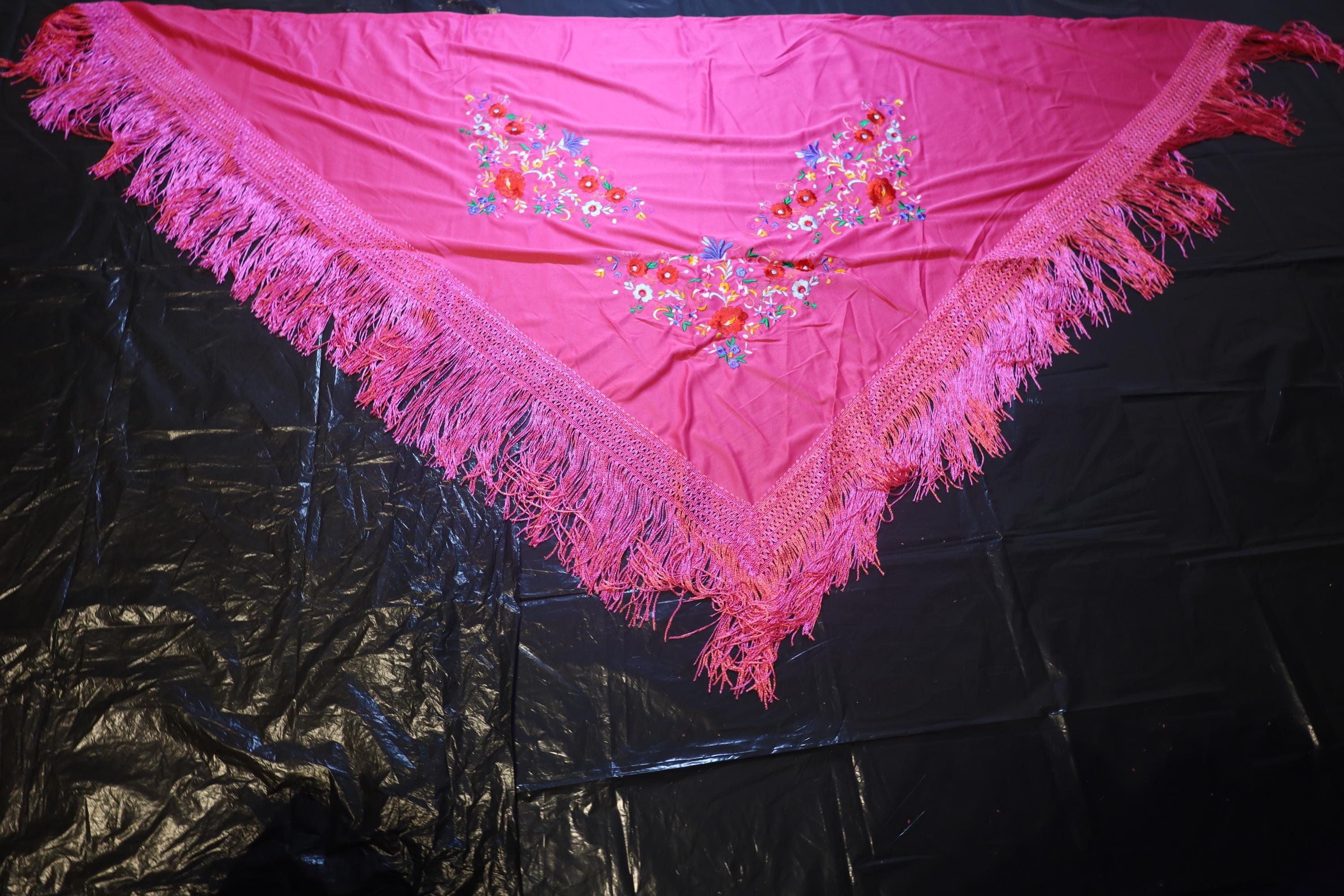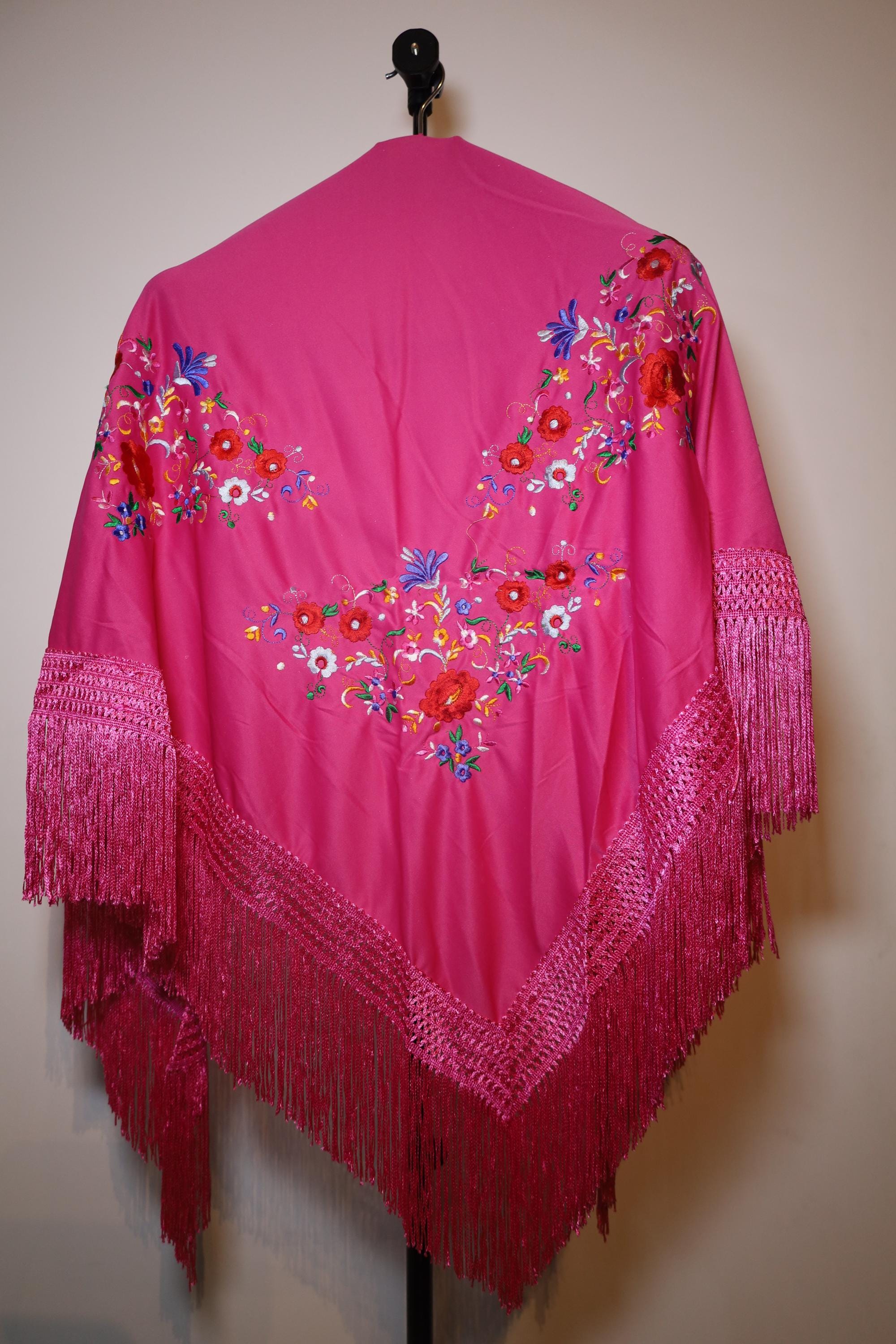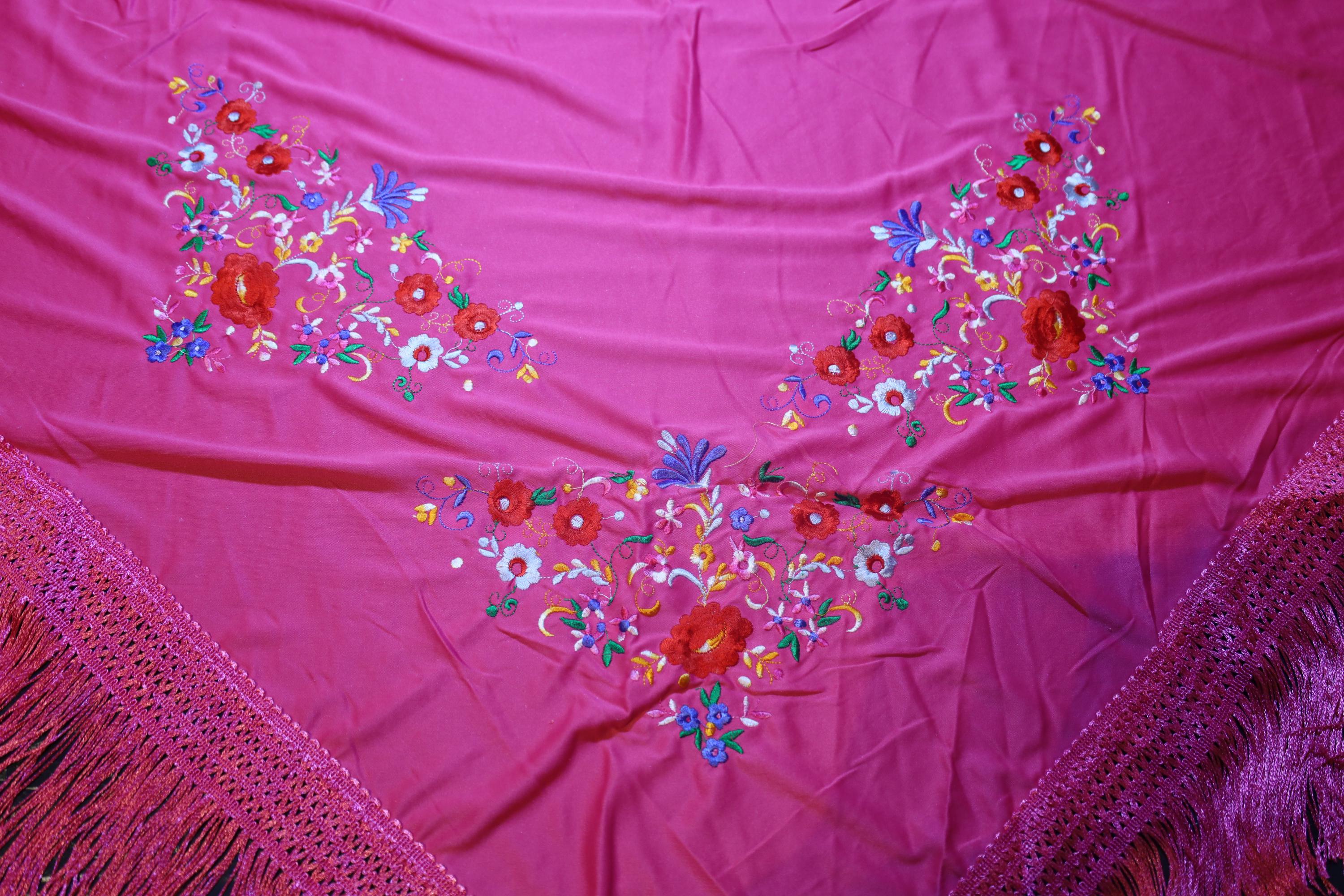 Description of the hand-embroidered fuchsia shawl