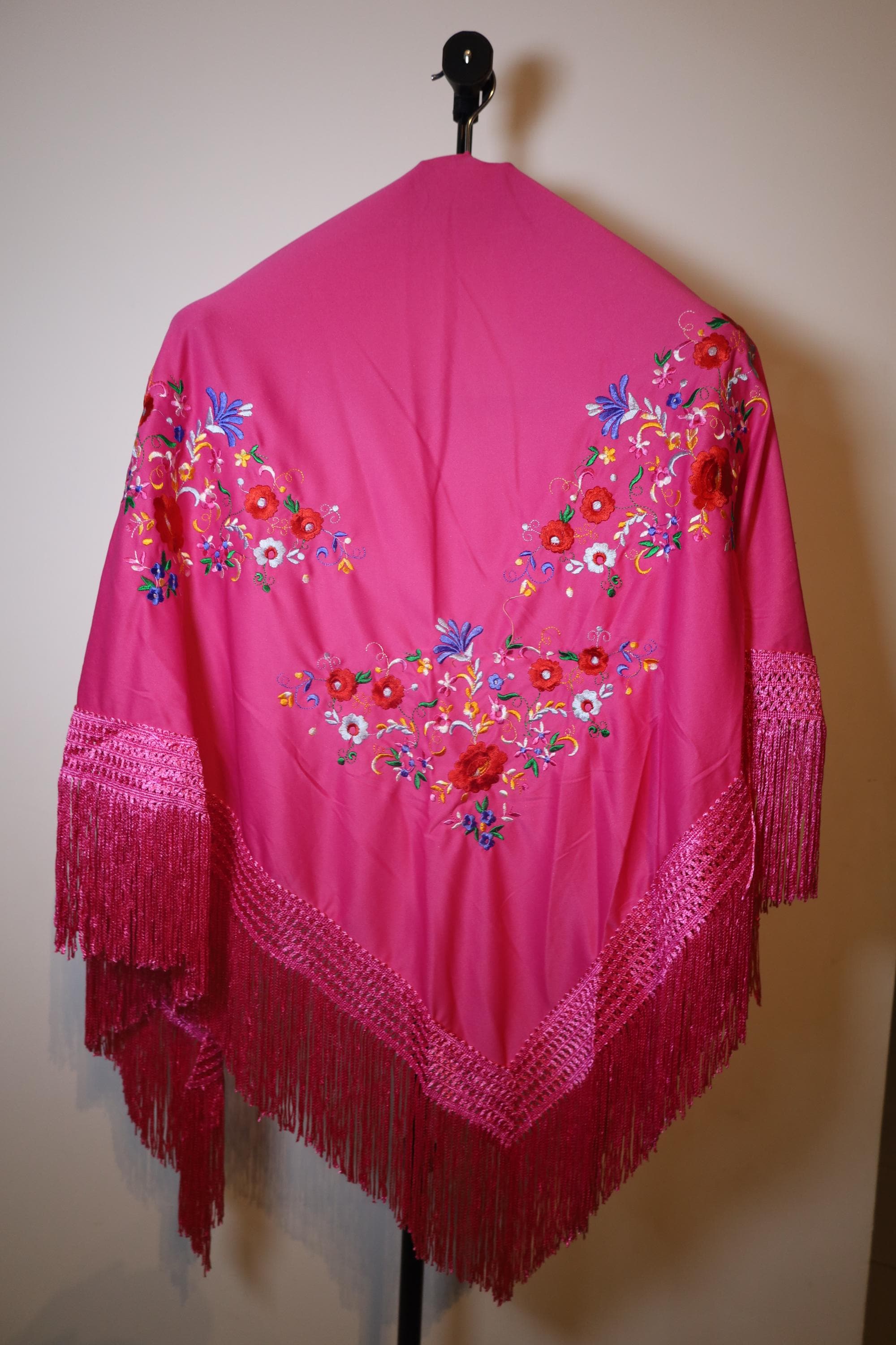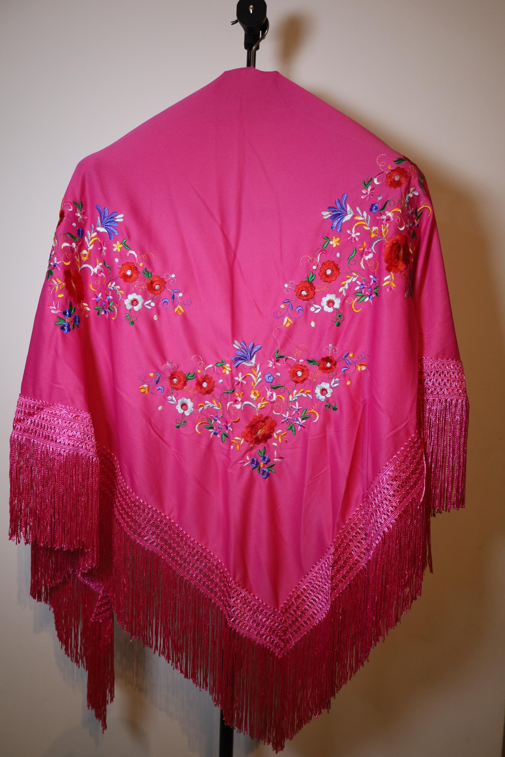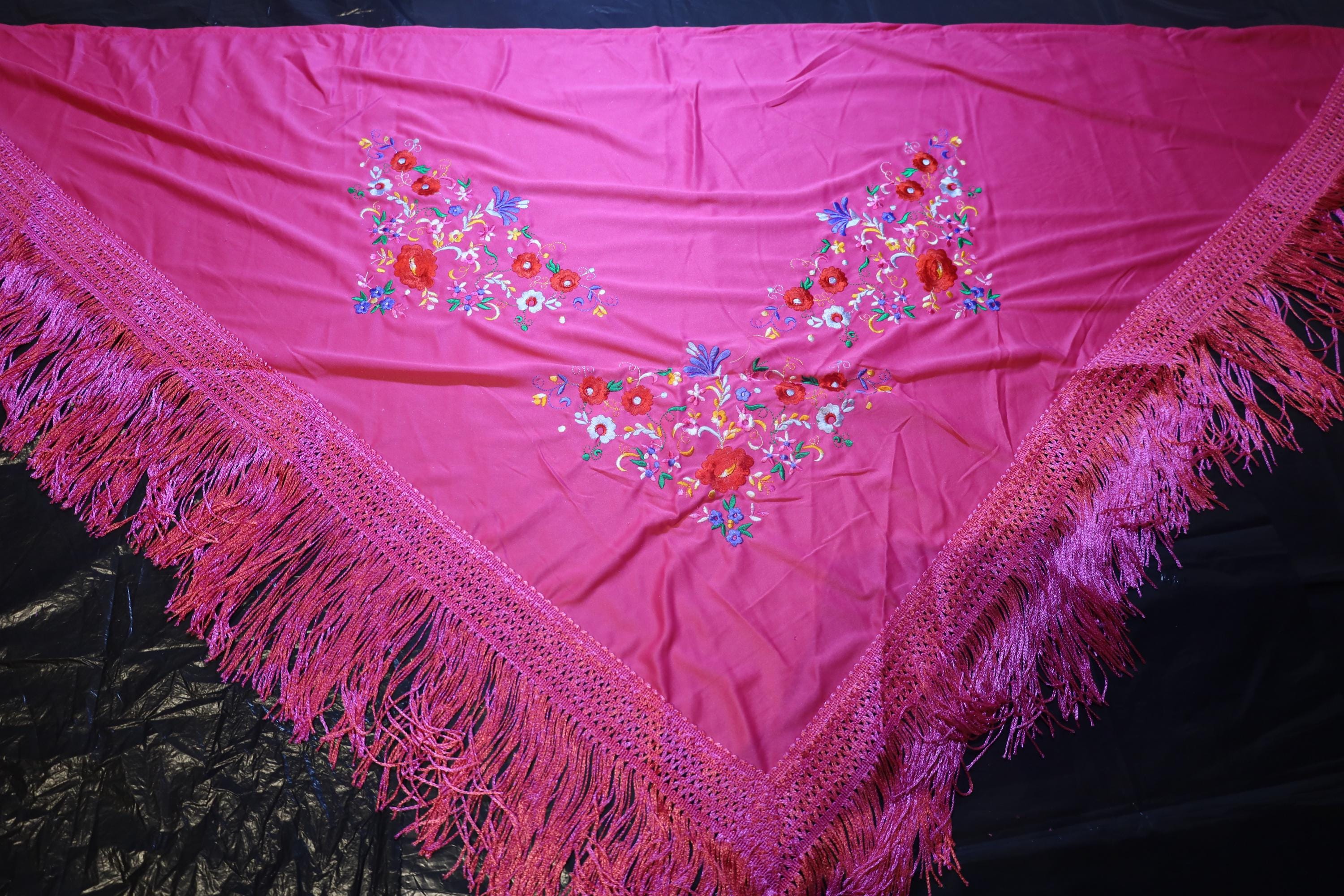 Description of the hand-embroidered fuchsia shawl