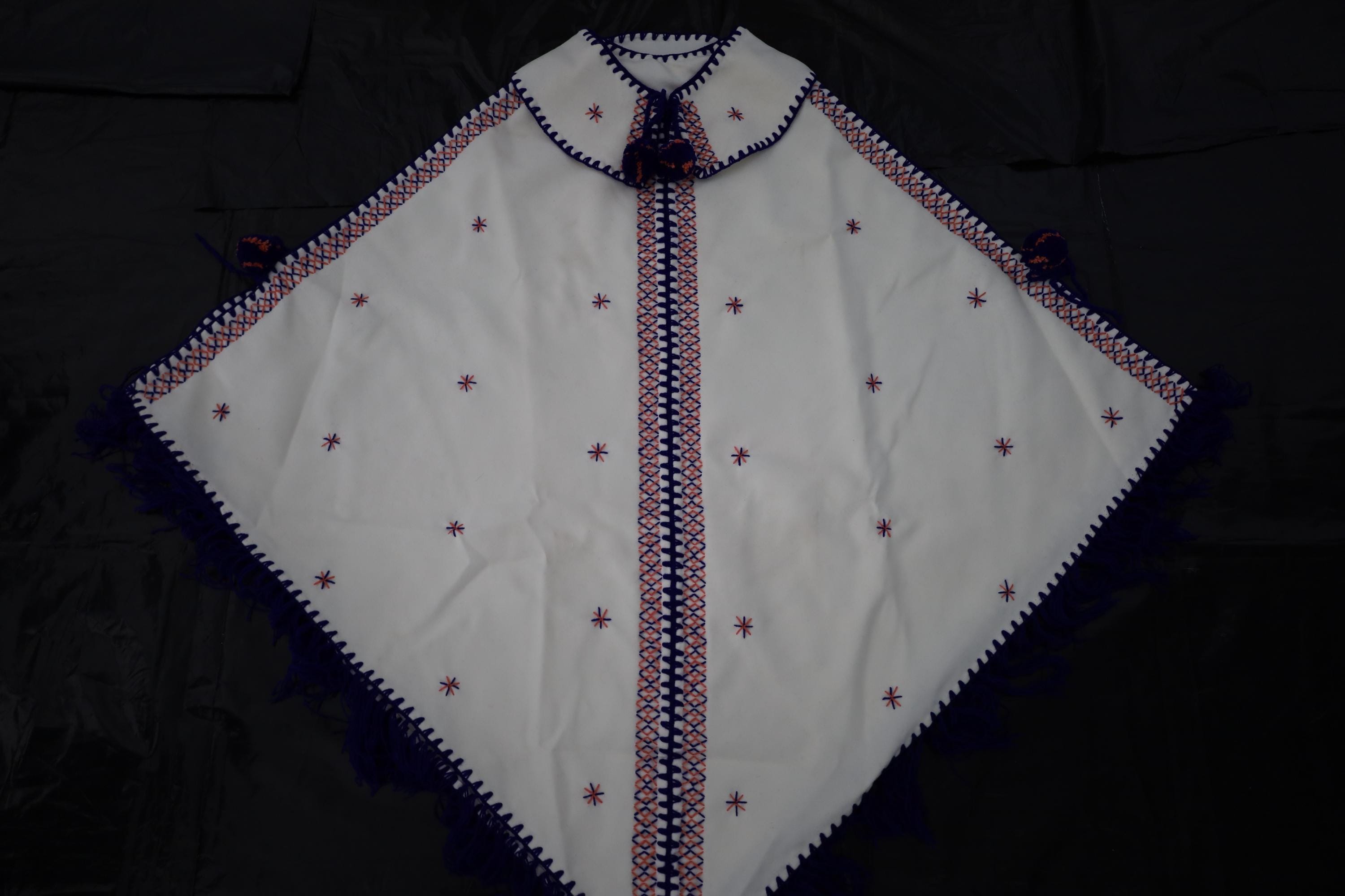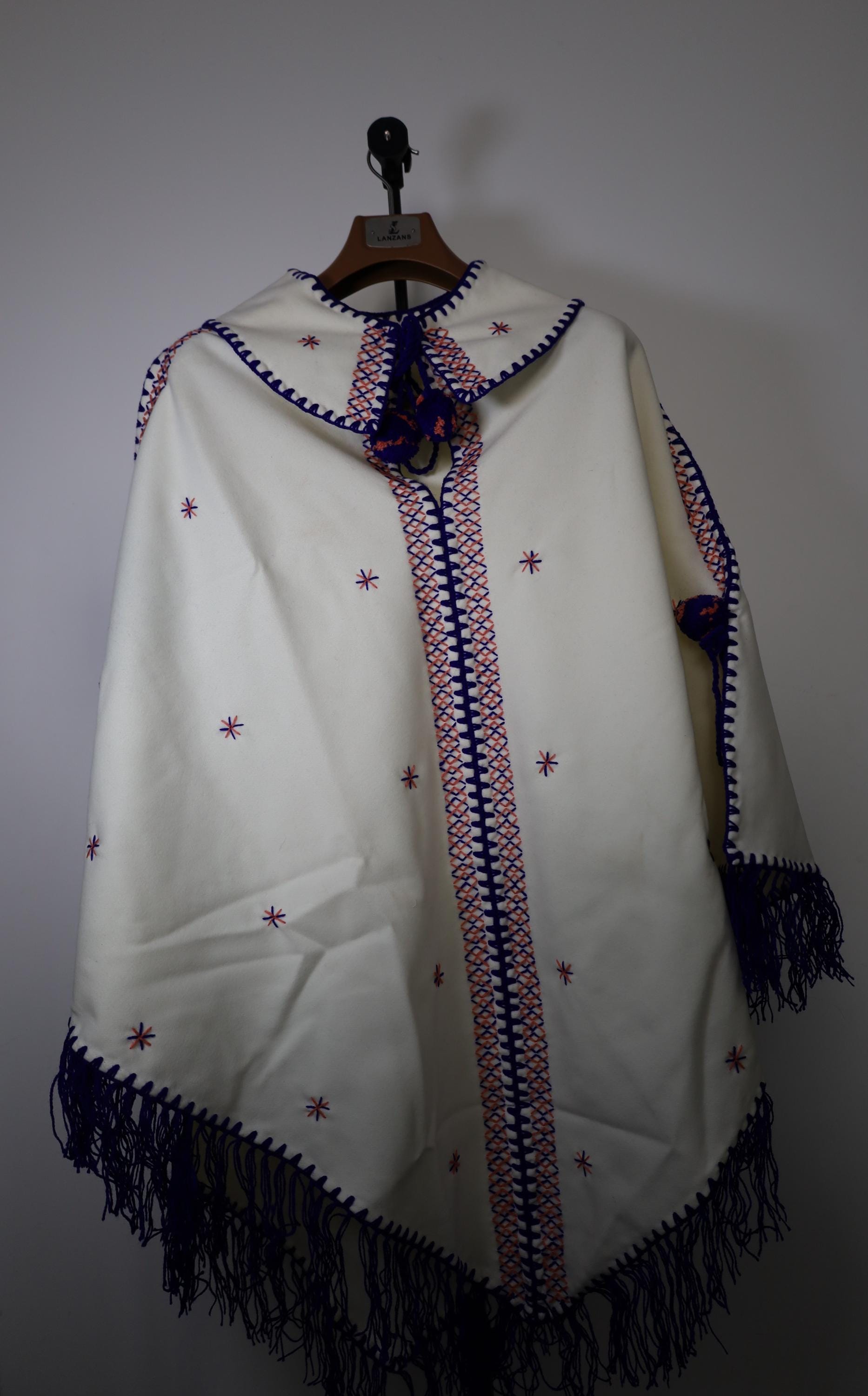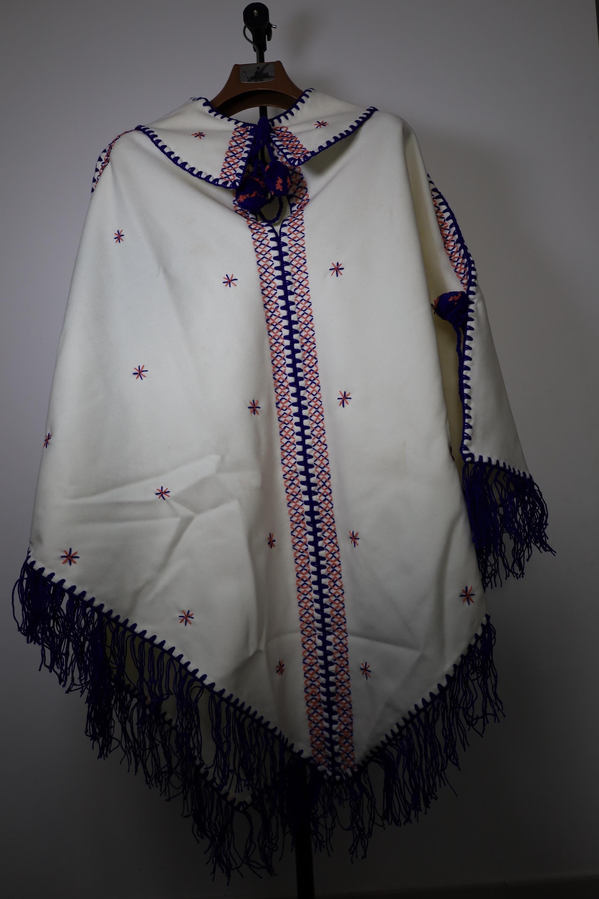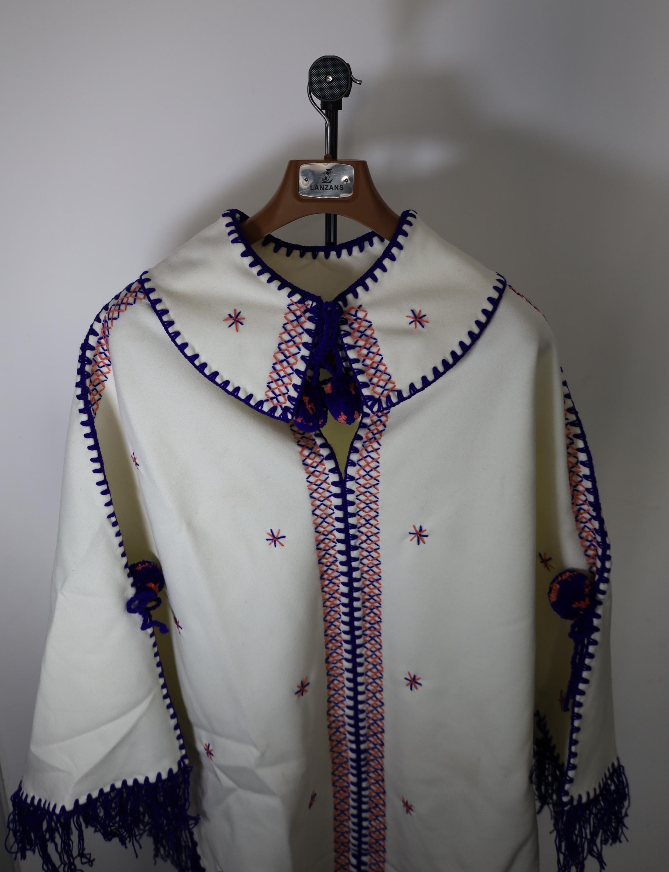 Handmade poncho with fringes made by women in the Mzab Valley in Ghardaïa. Unique piece.