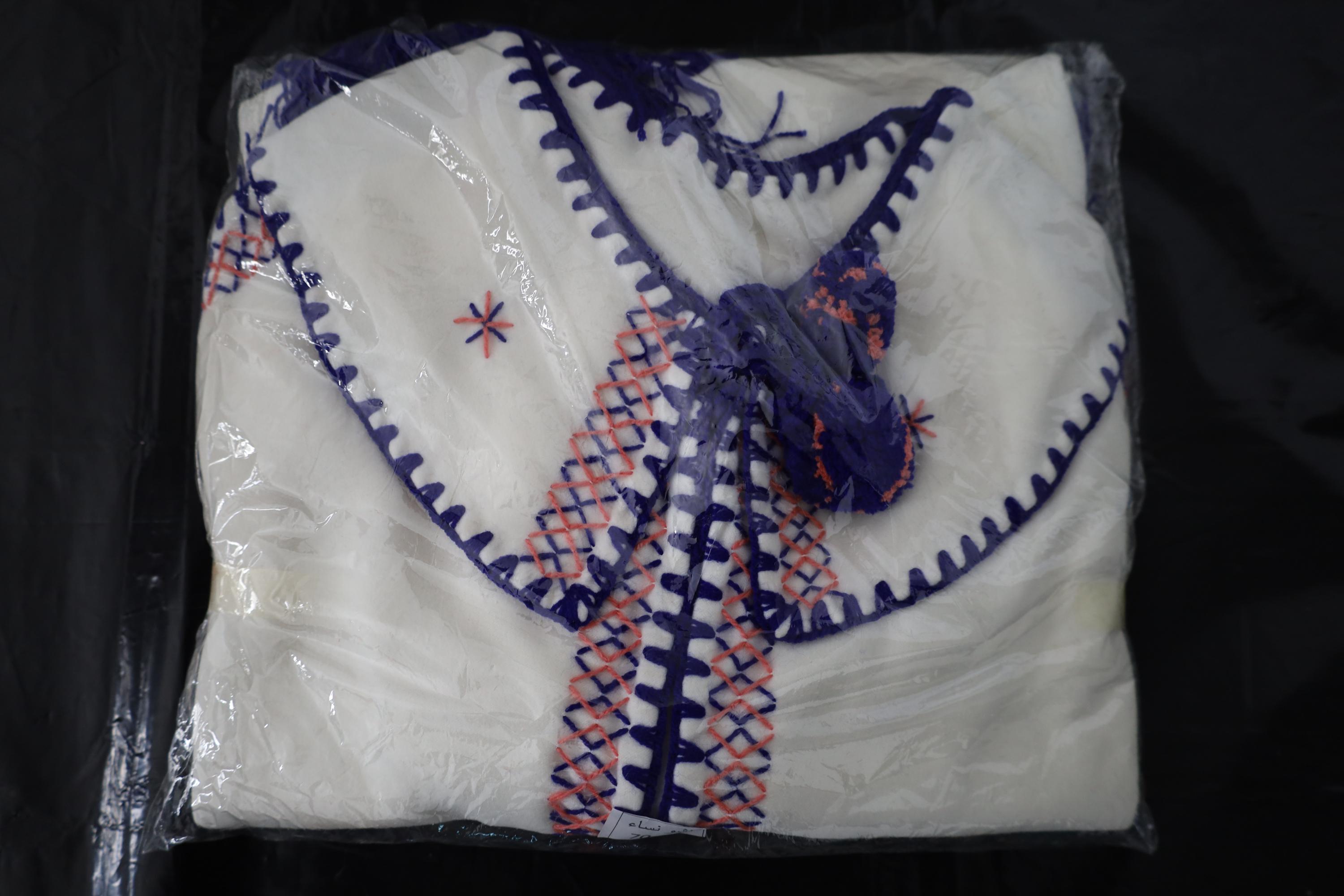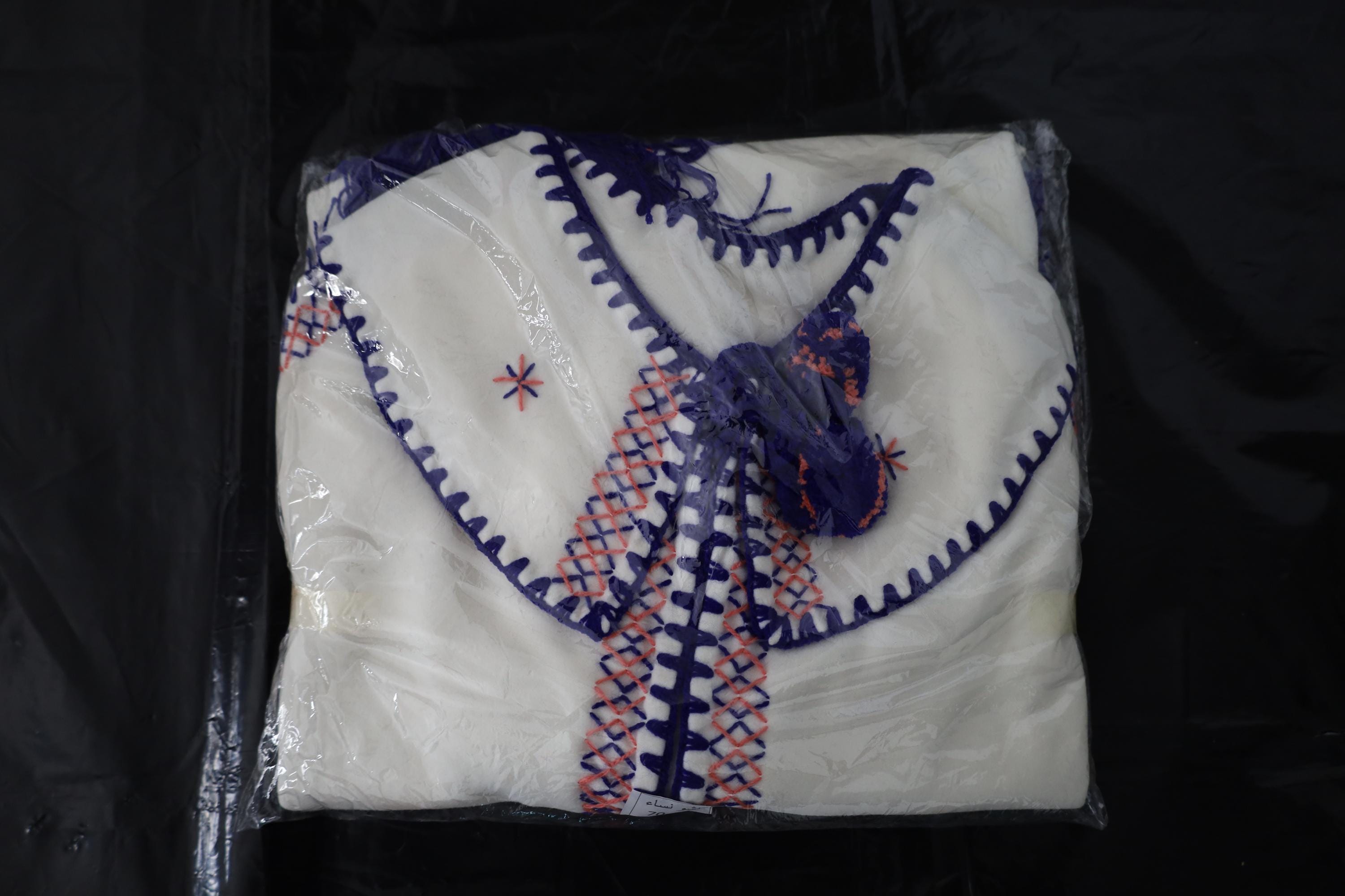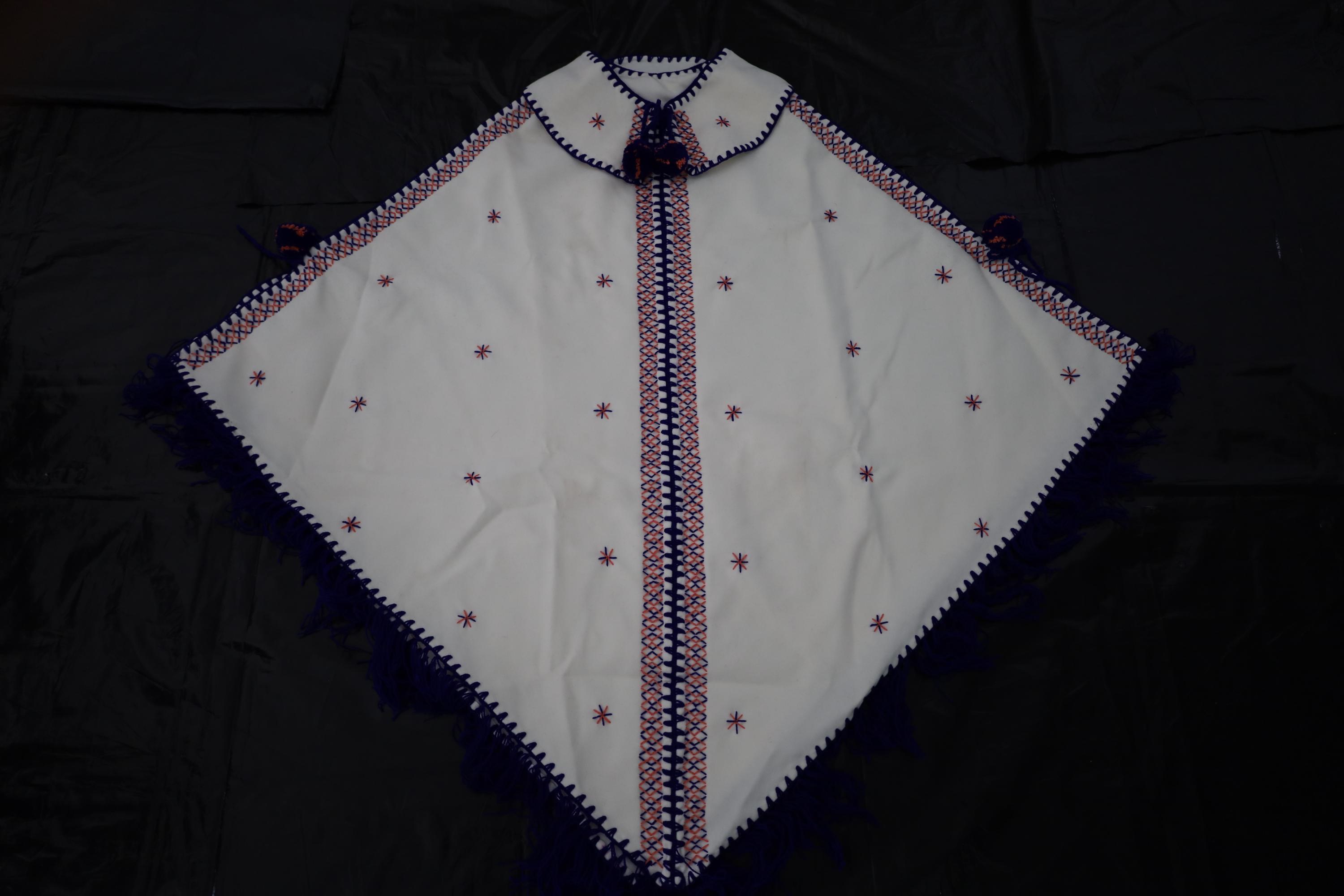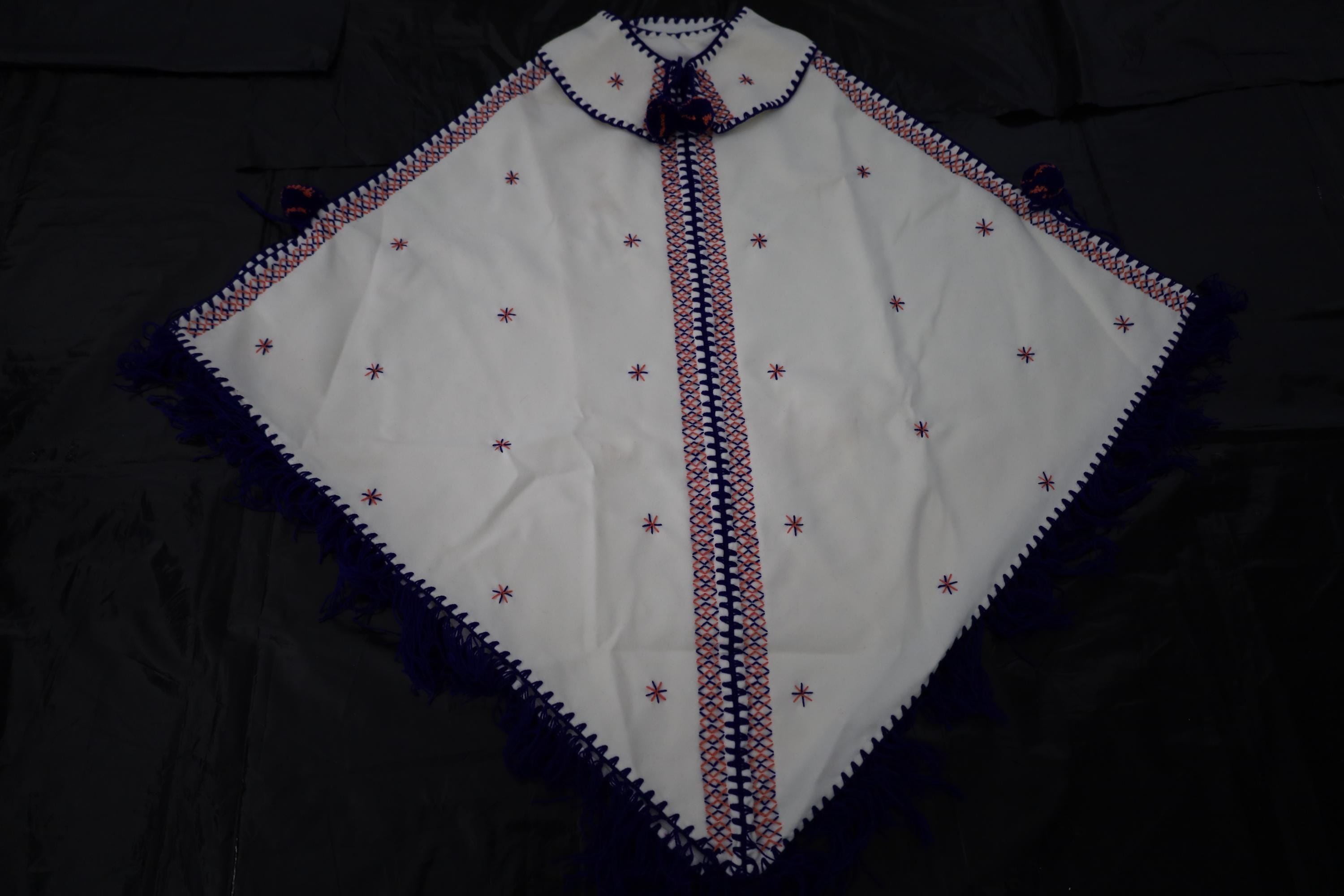 Handmade poncho with fringes made by women in the Mzab Valley in Ghardaïa. Unique piece.