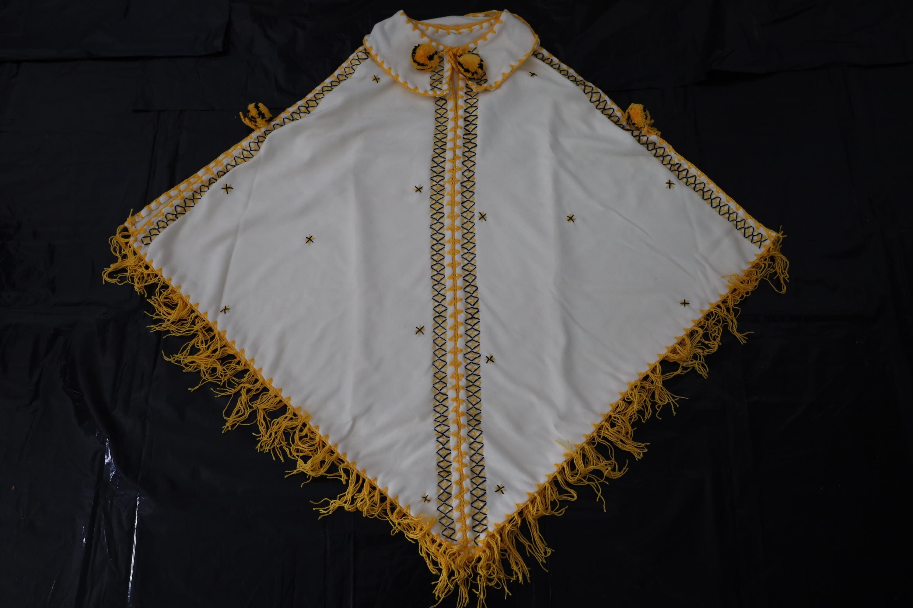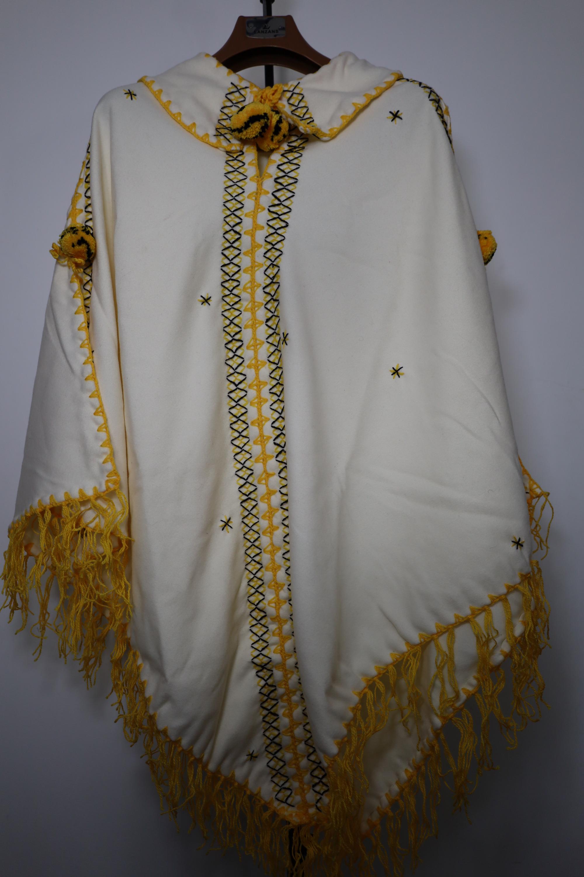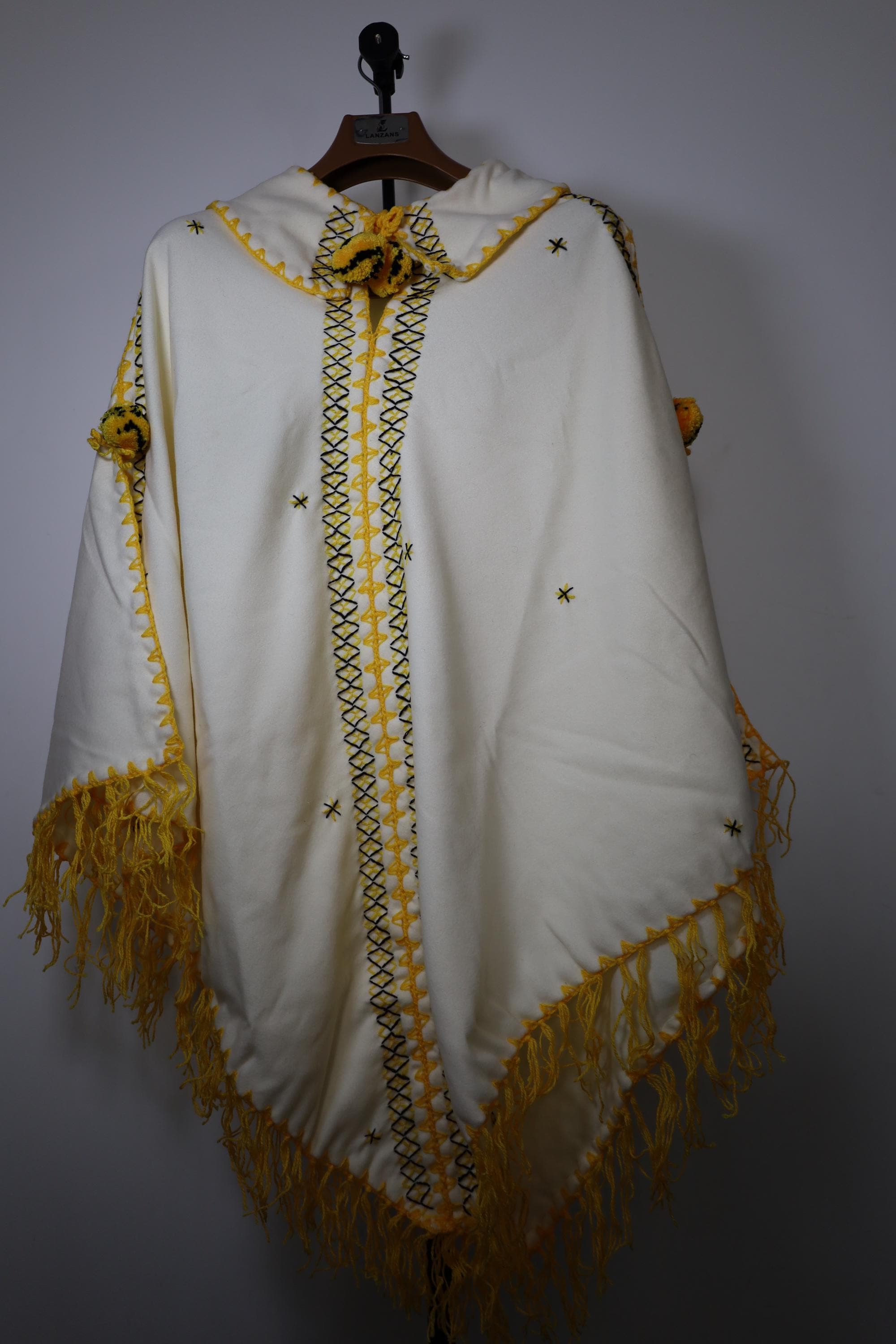 Handmade poncho with fringes made by women in the Mzab Valley in Ghardaïa. Unique piece.