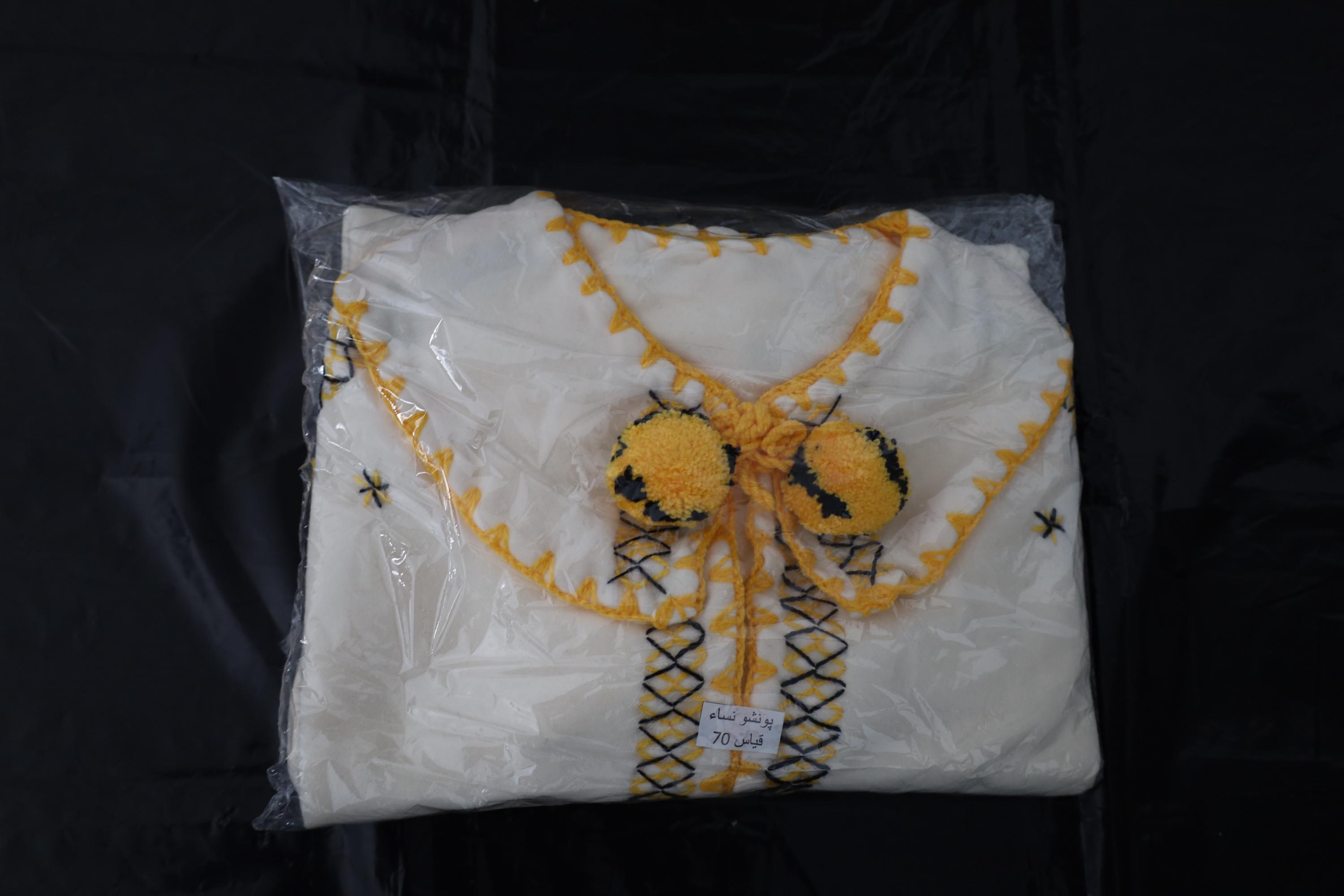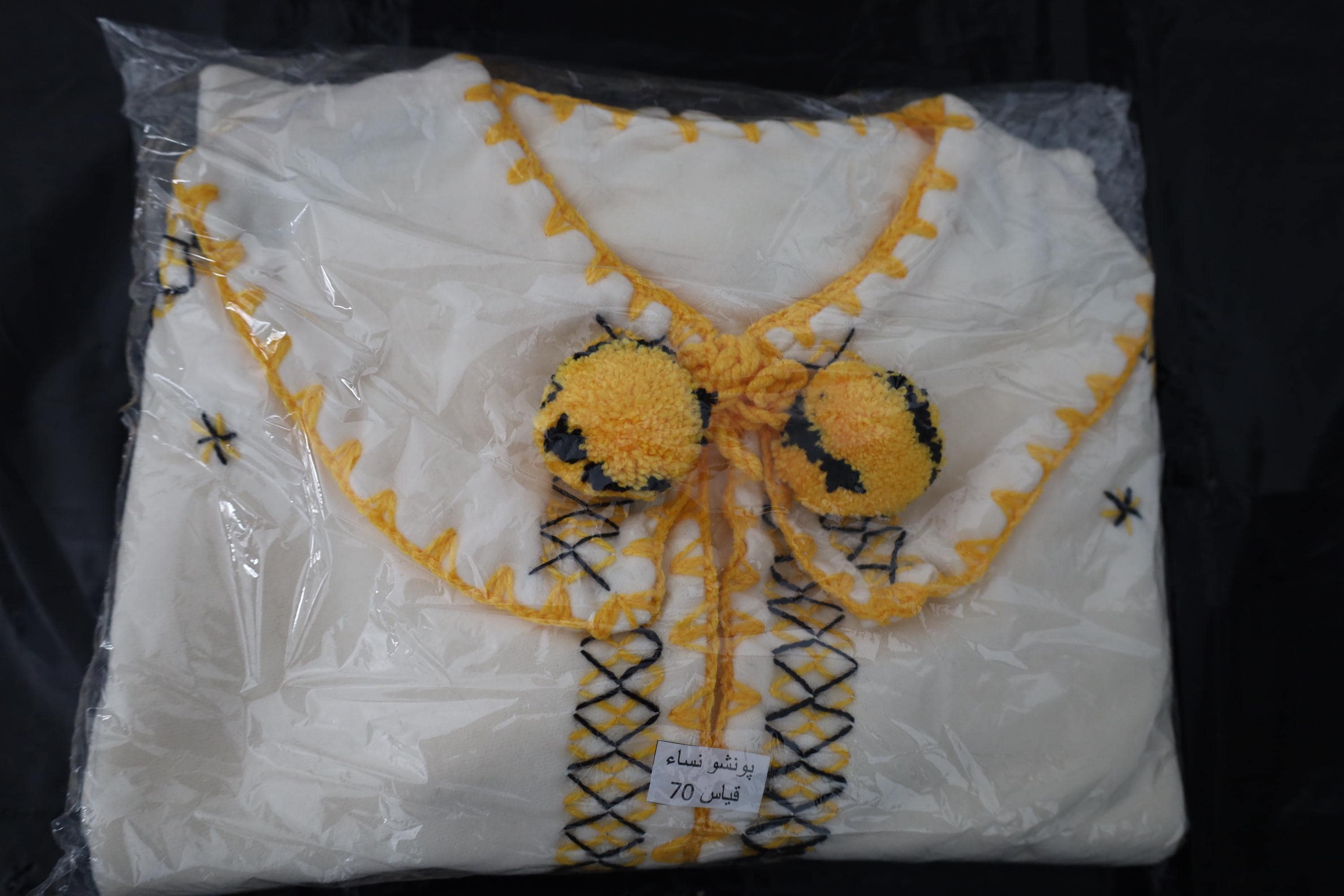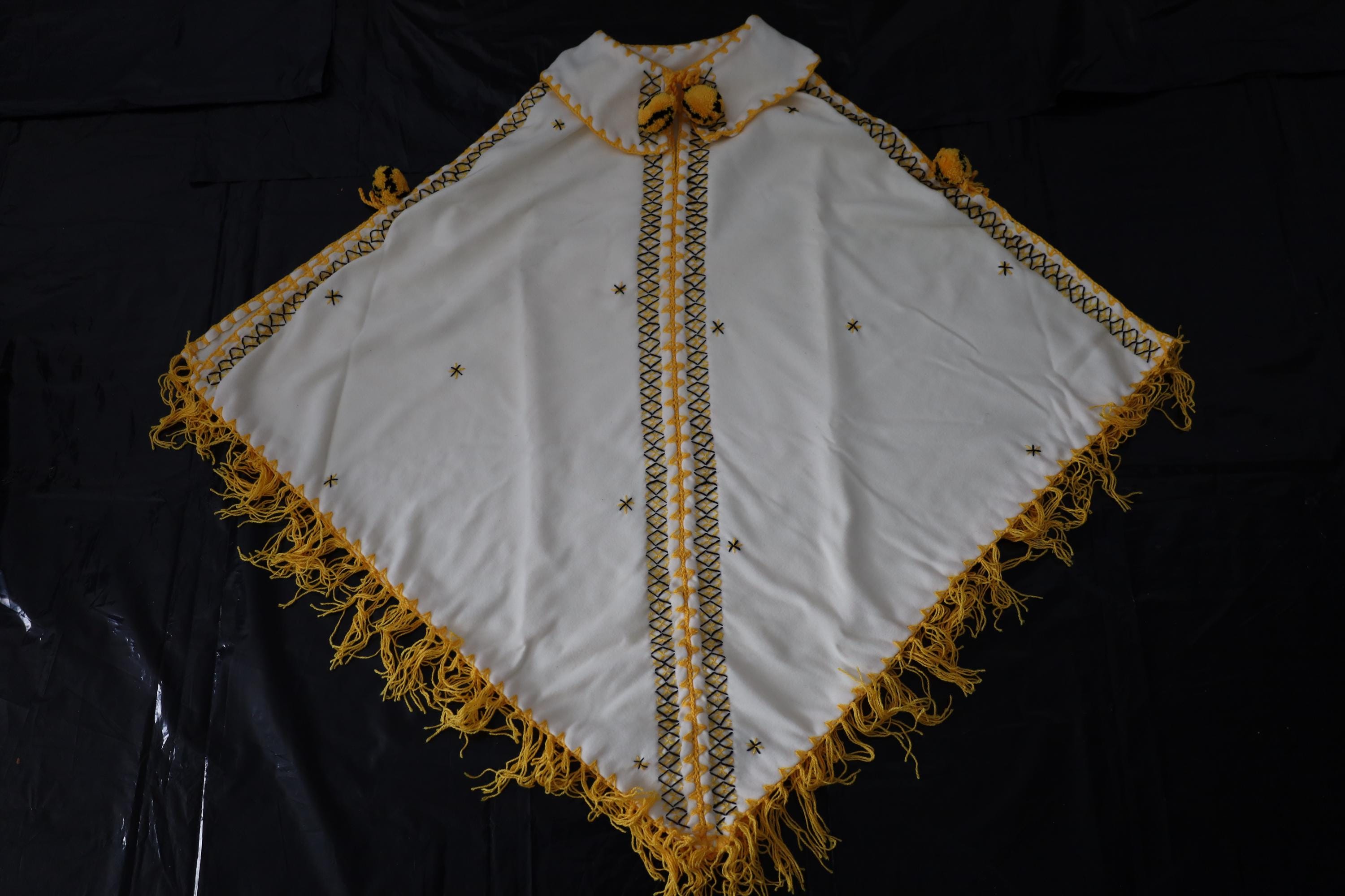 Handmade poncho with fringes made by women in the Mzab Valley in Ghardaïa. Unique piece.