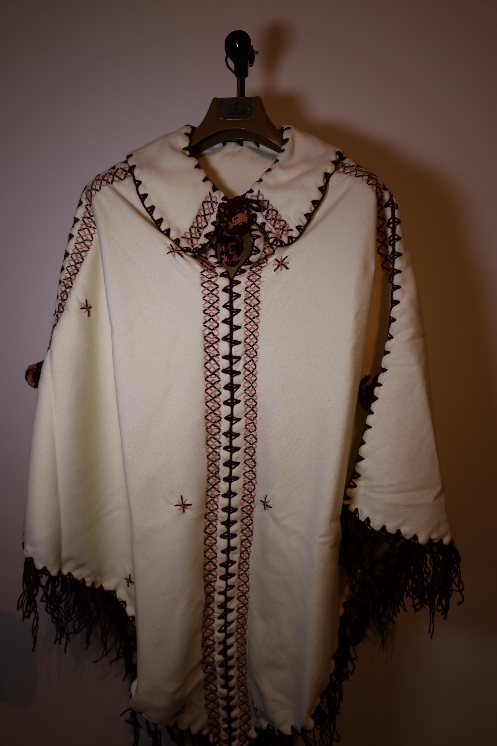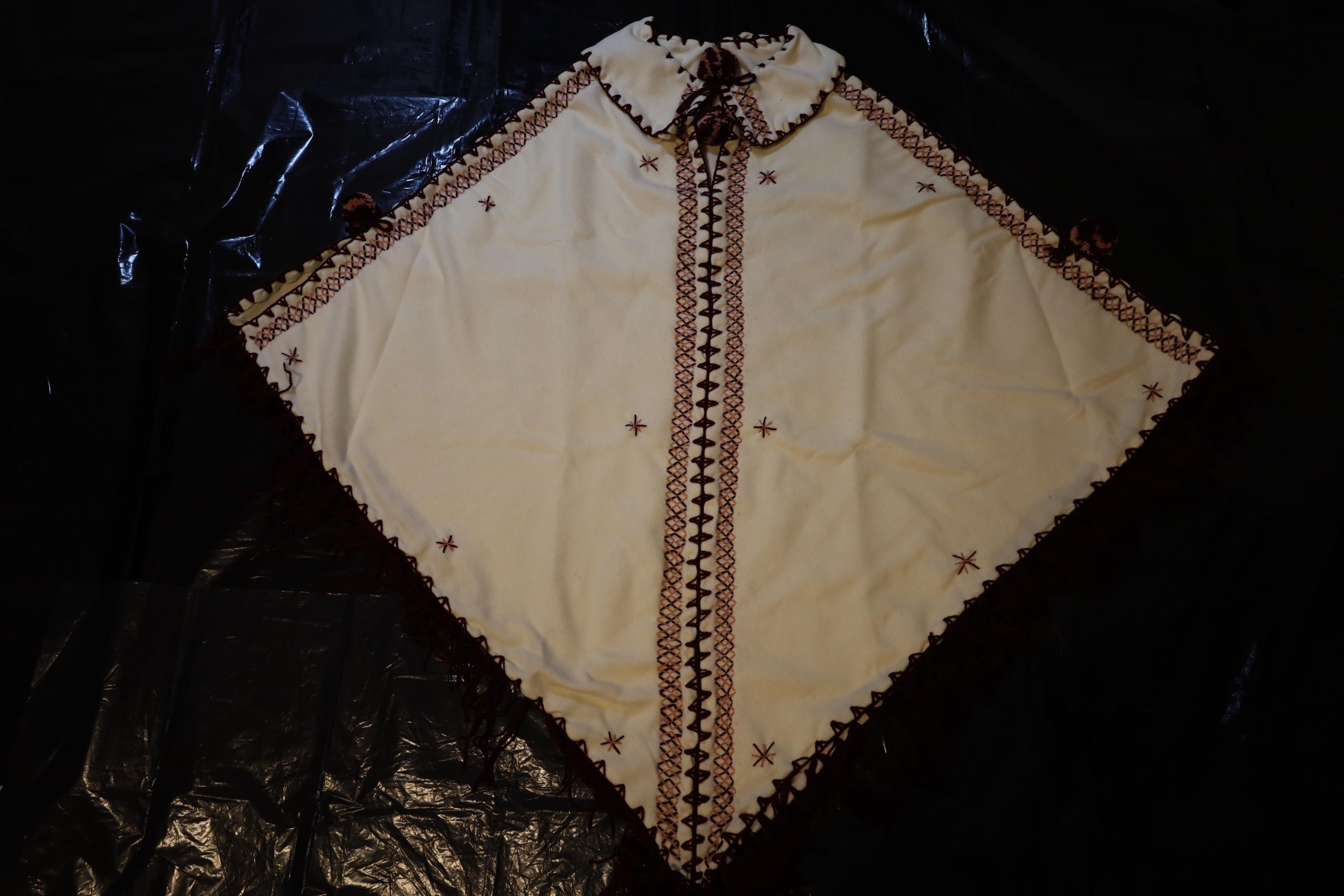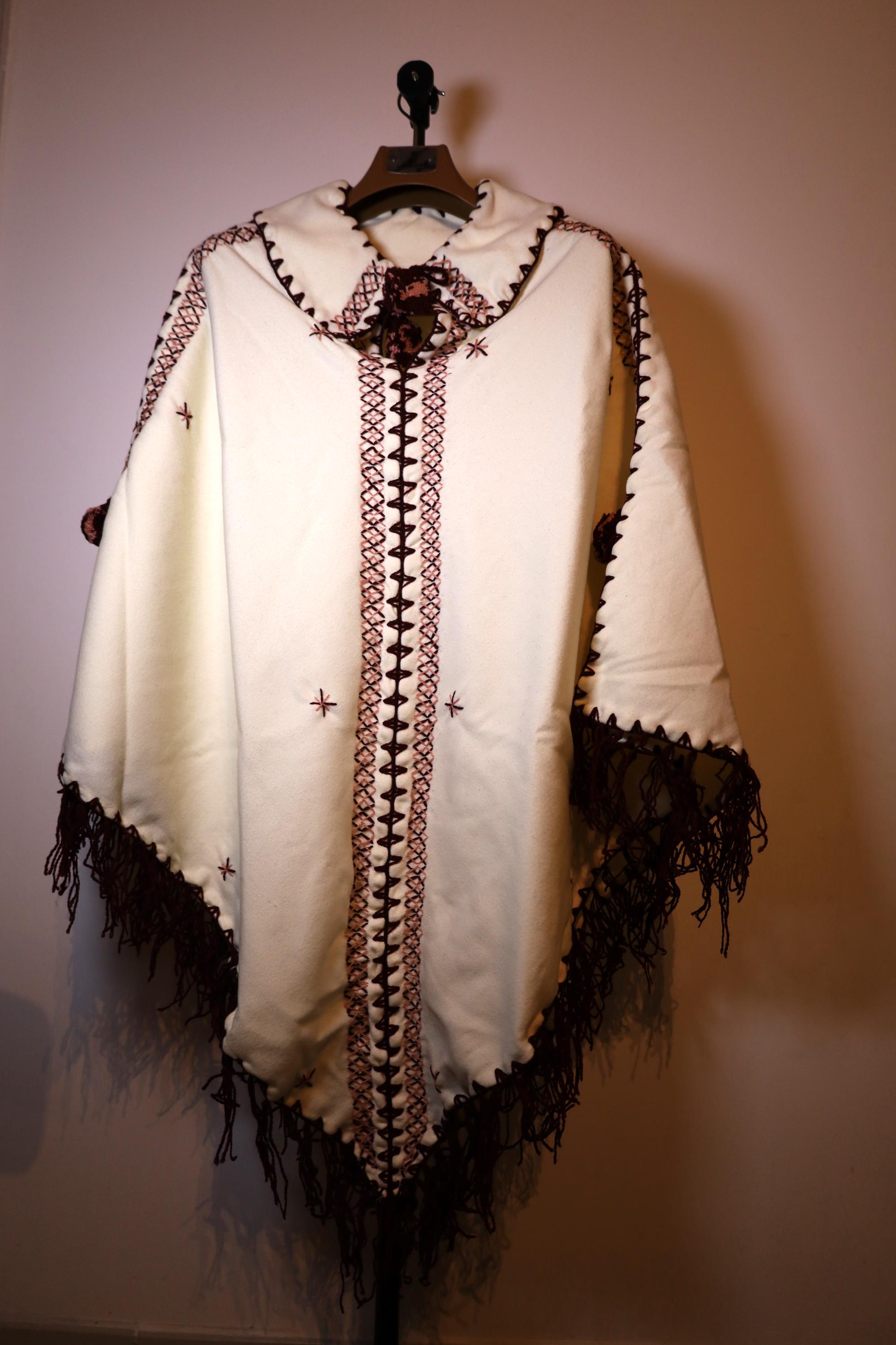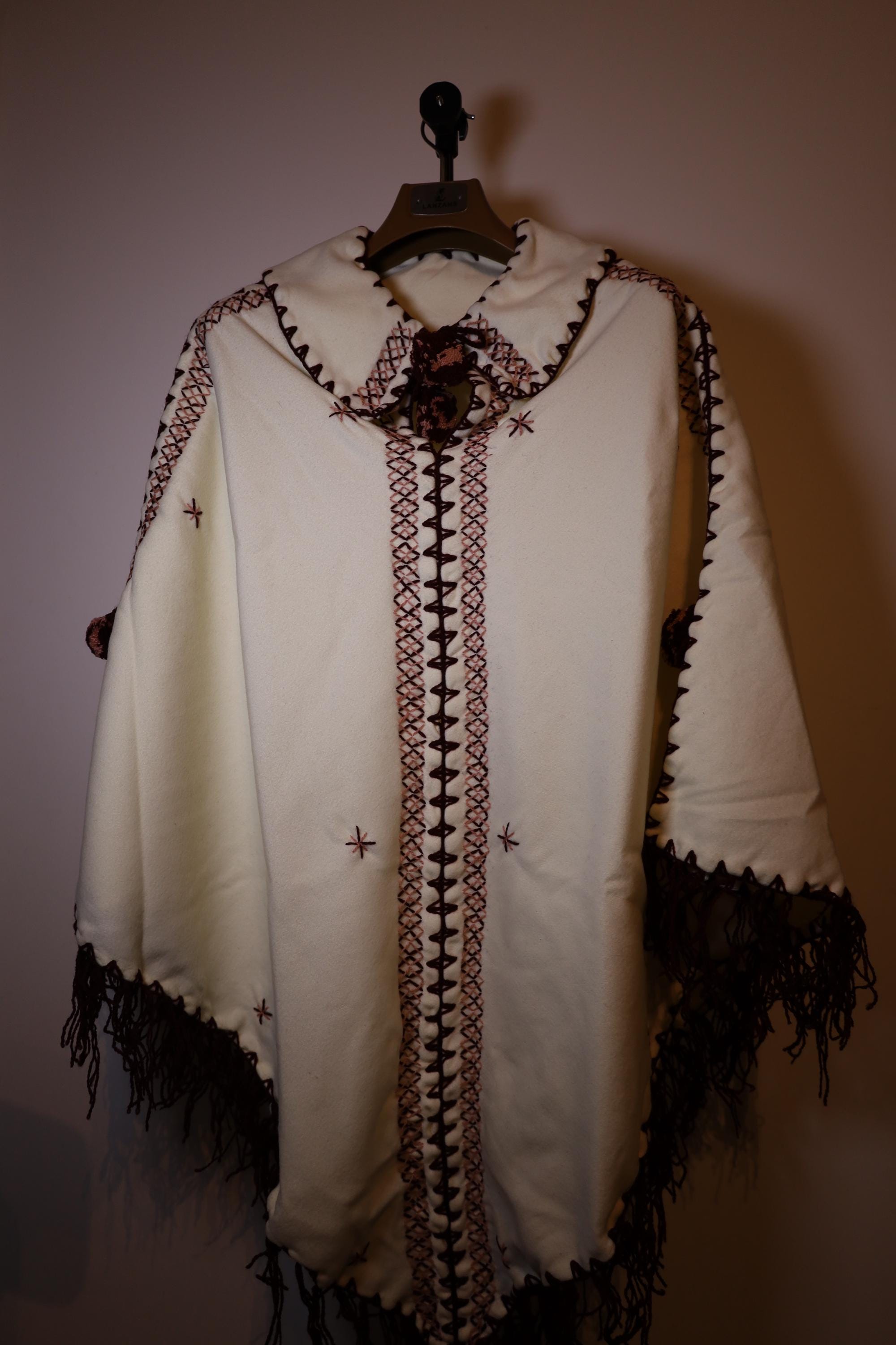 Handmade poncho with fringes made by women in the Mzab Valley in Ghardaïa. Unique piece.