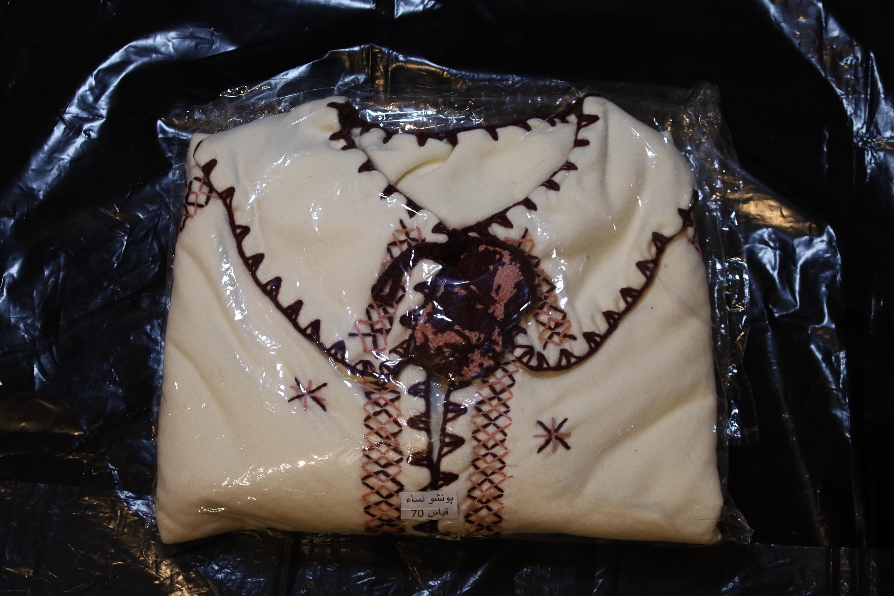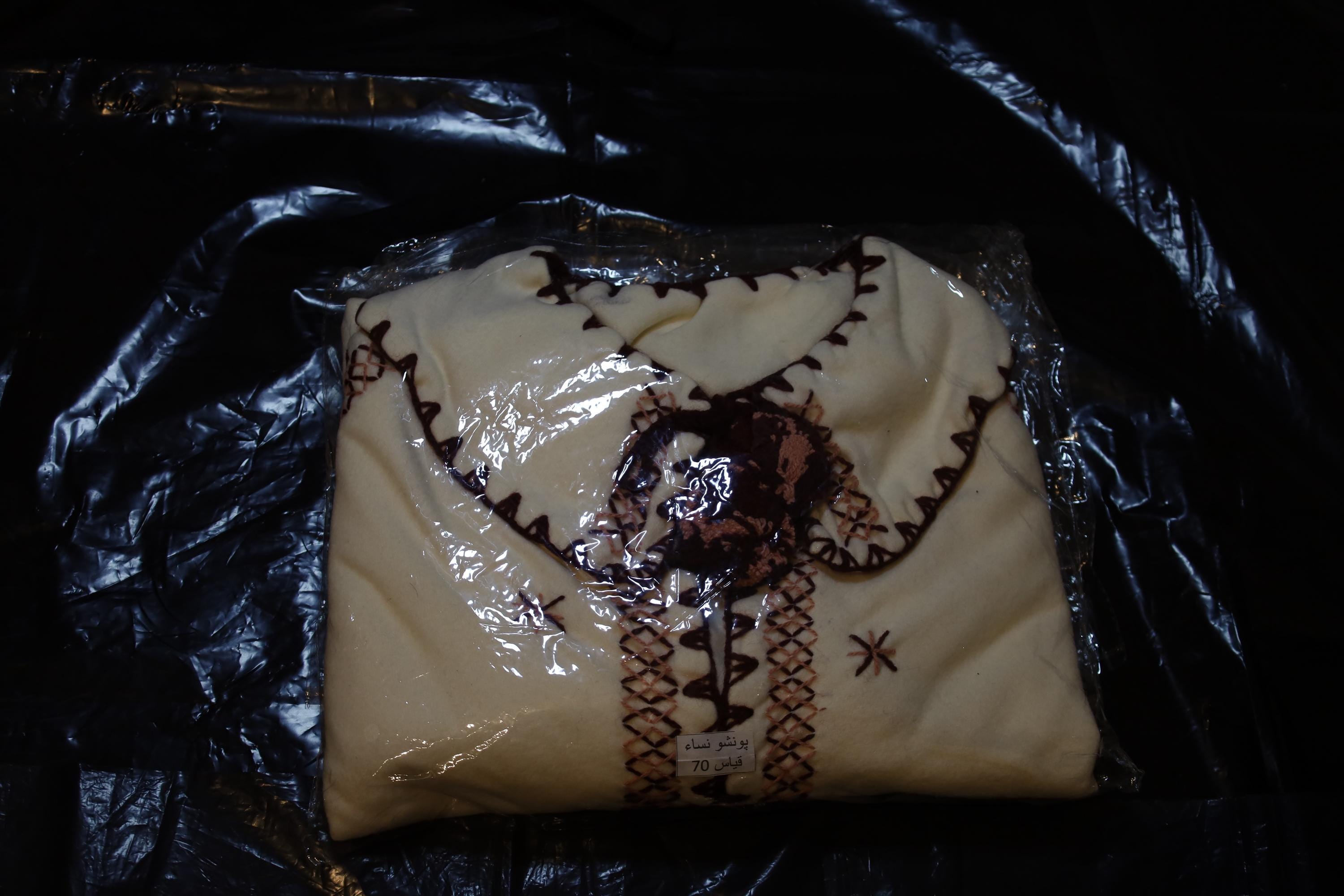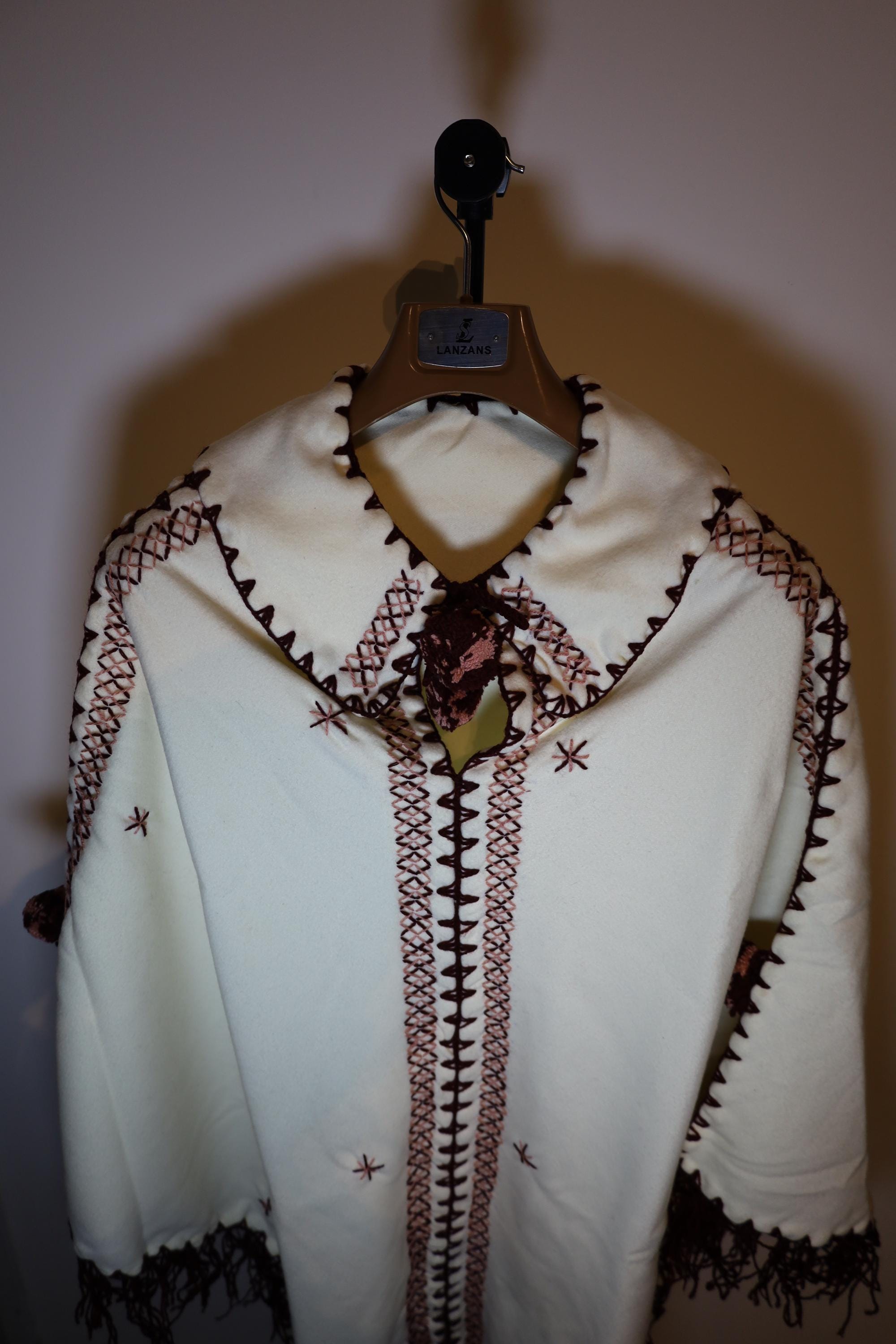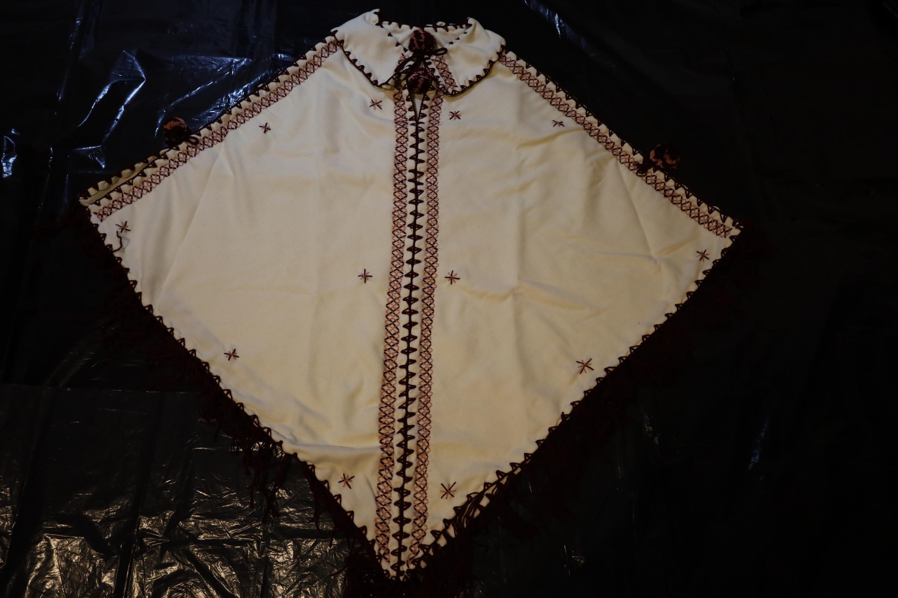 Handmade poncho with fringes made by women in the Mzab Valley in Ghardaïa. Unique piece.