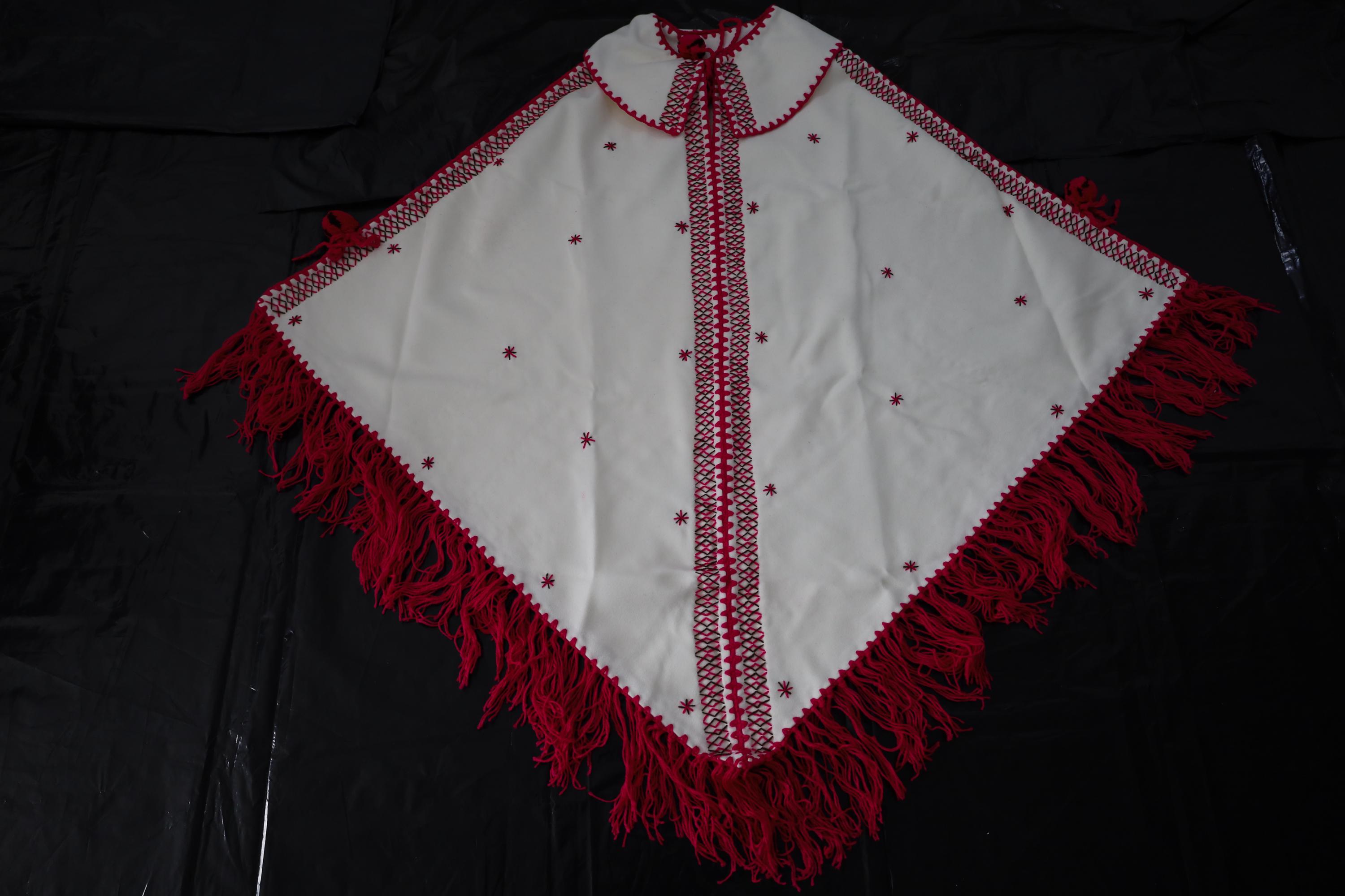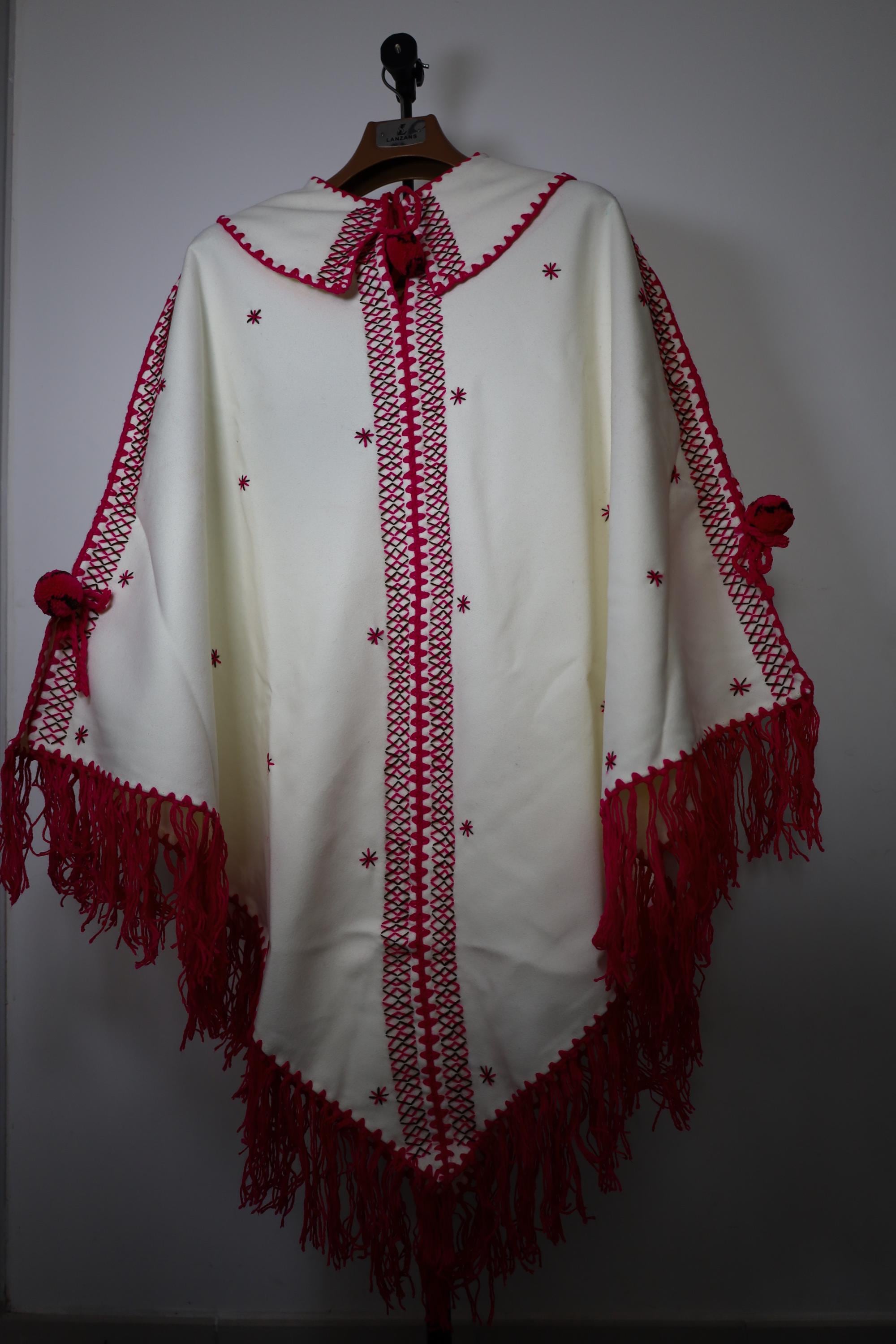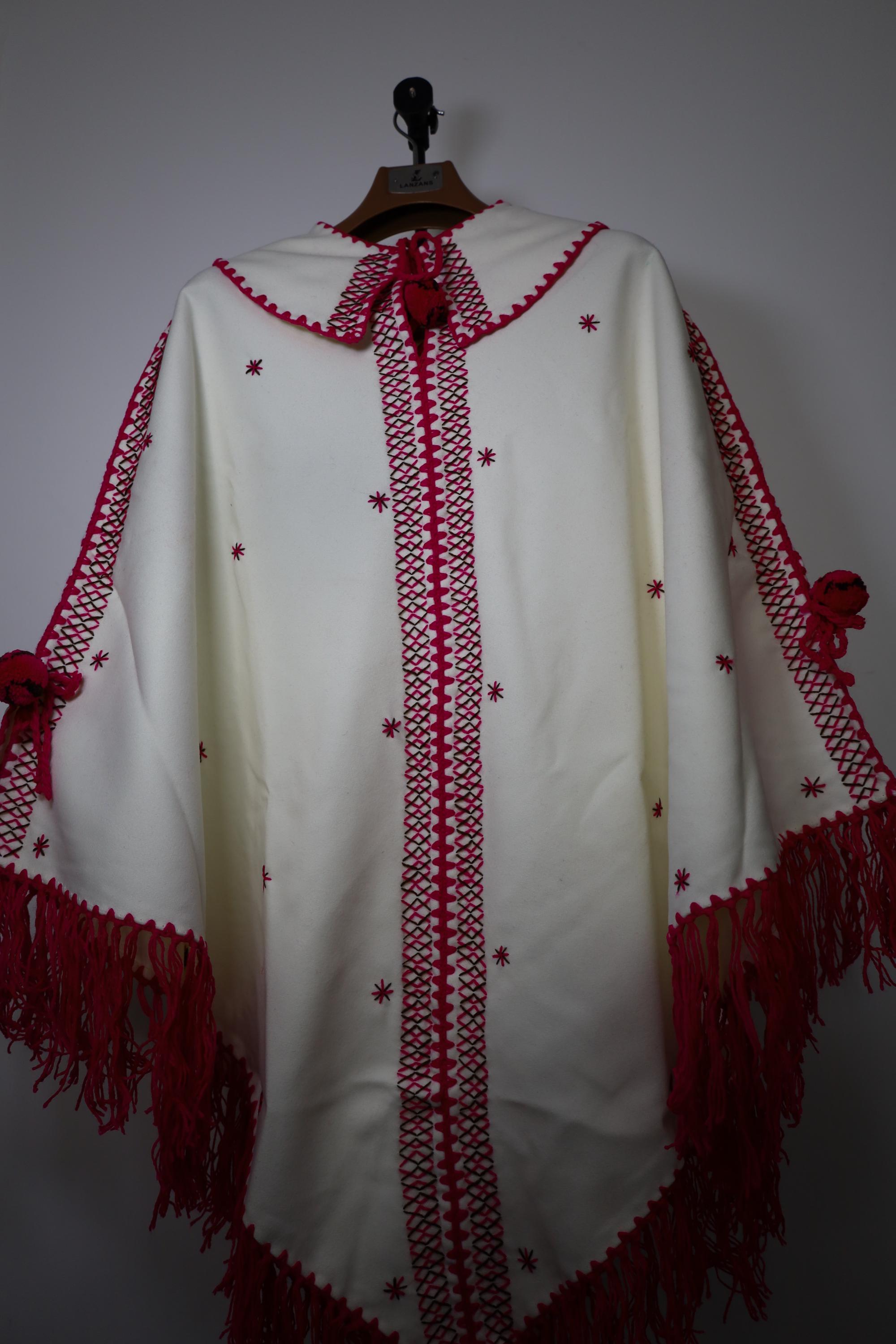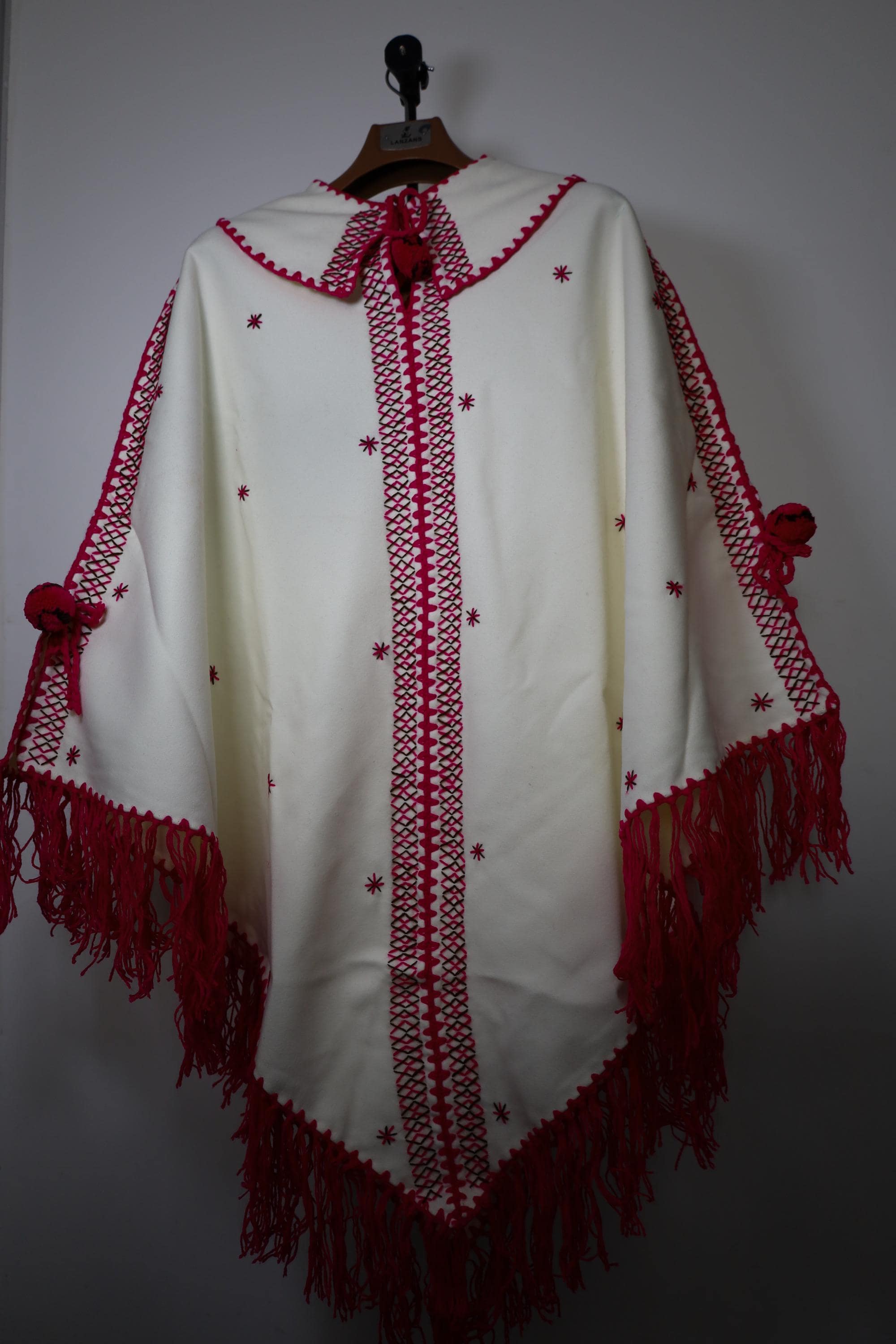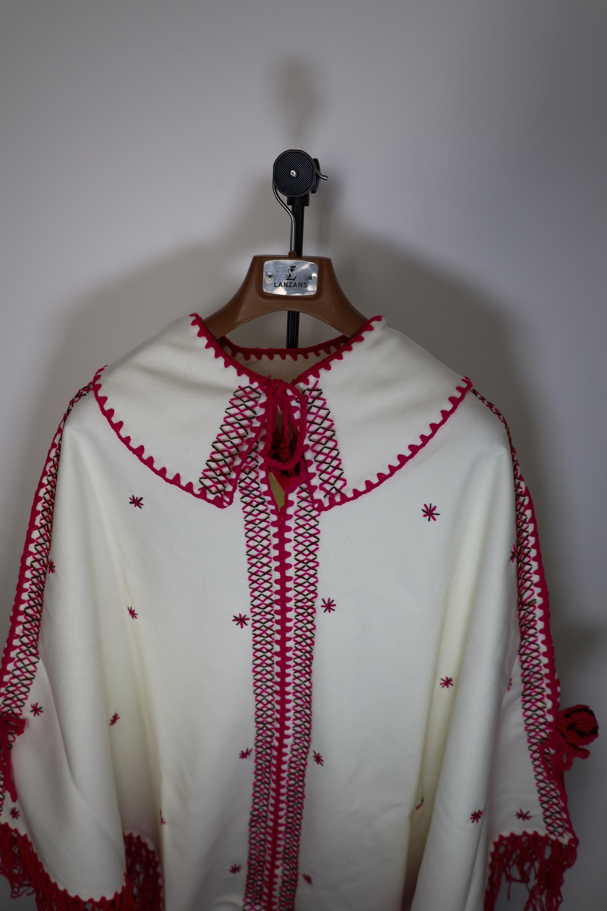 Handmade poncho with fringes made by women in the Mzab Valley in Ghardaïa. Unique piece.