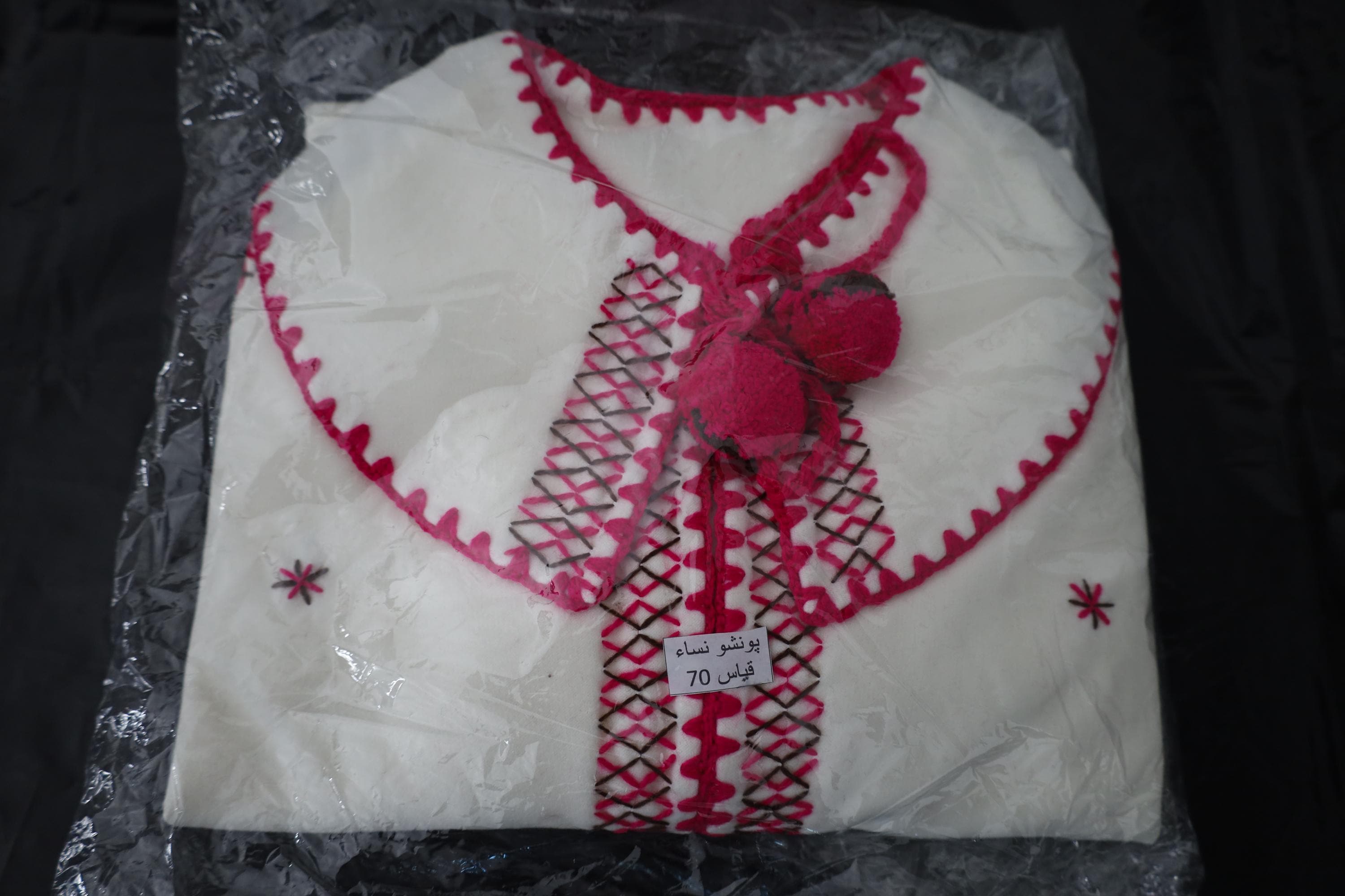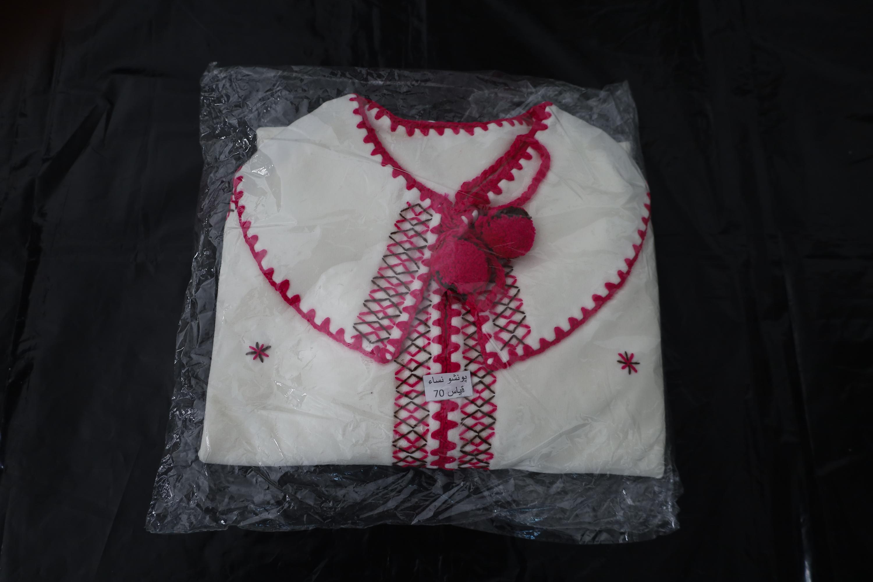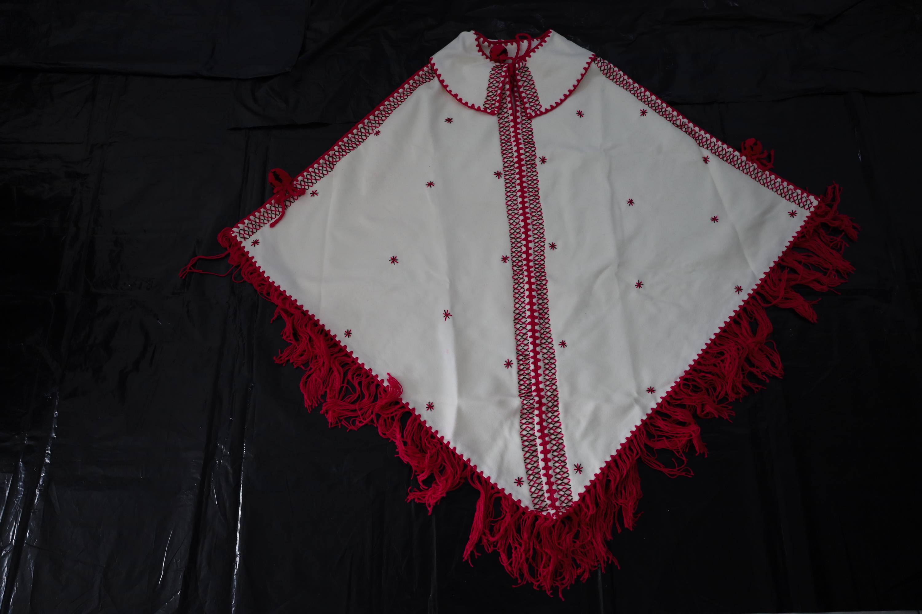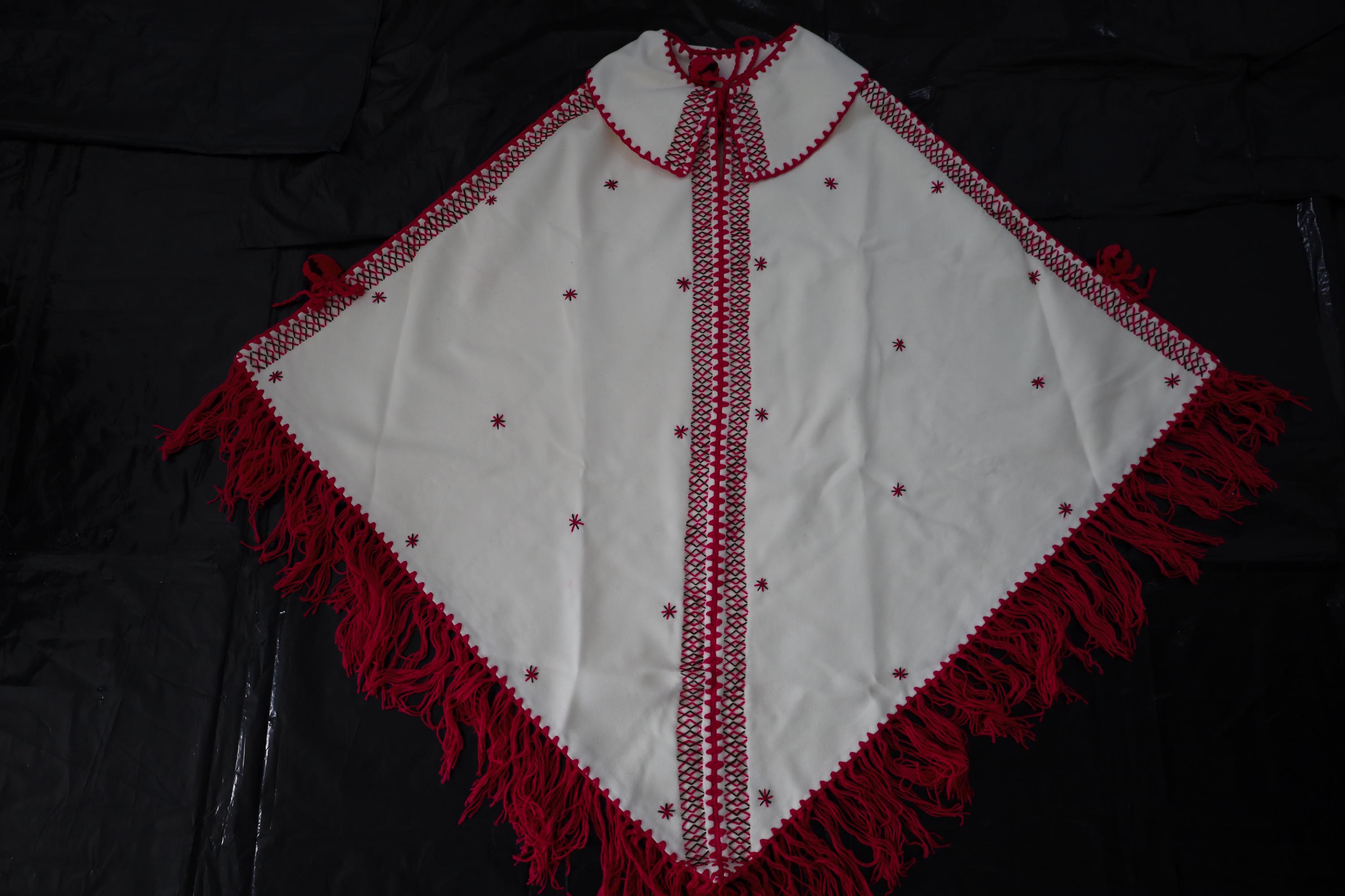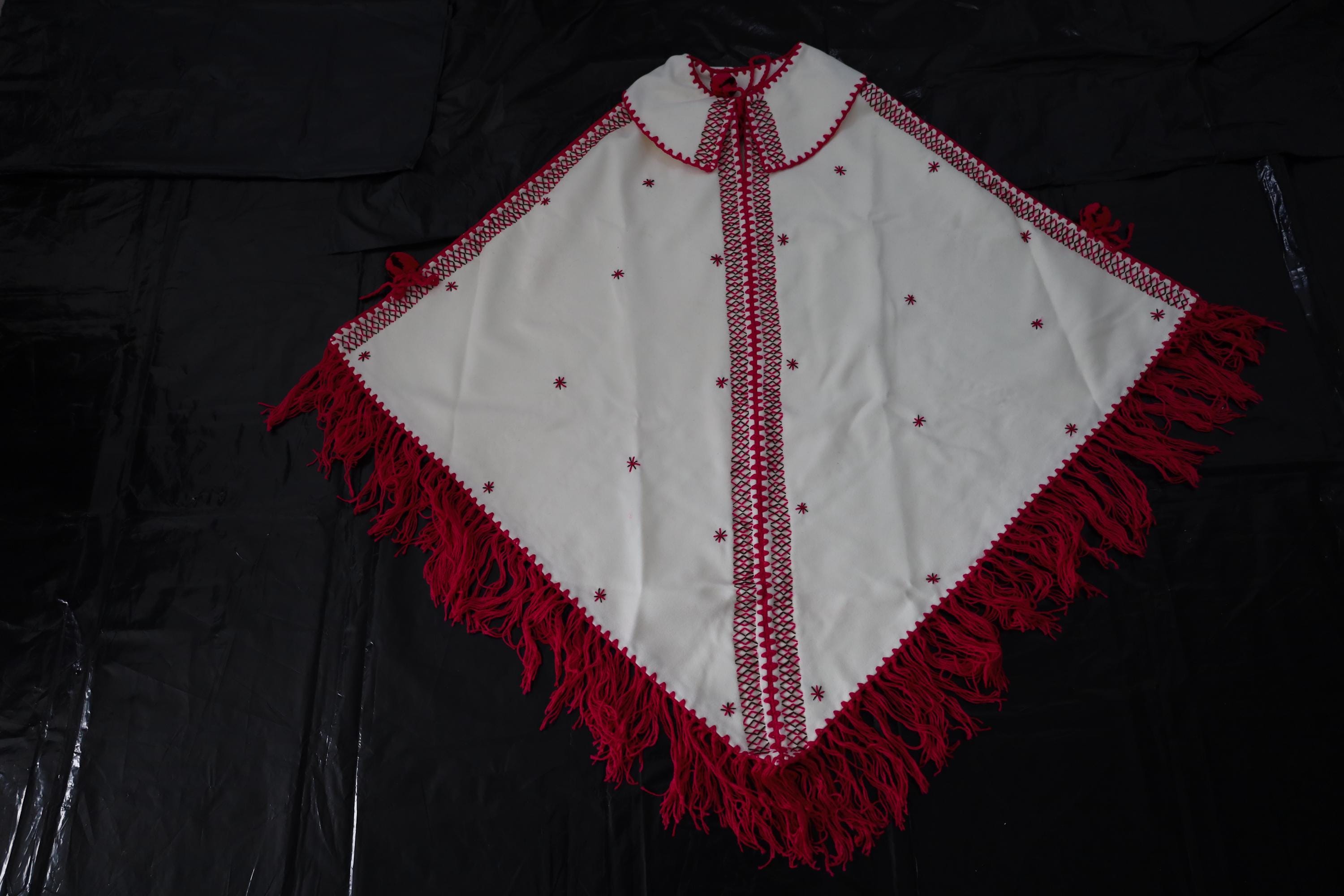 Handmade poncho with fringes made by women in the Mzab Valley in Ghardaïa. Unique piece.