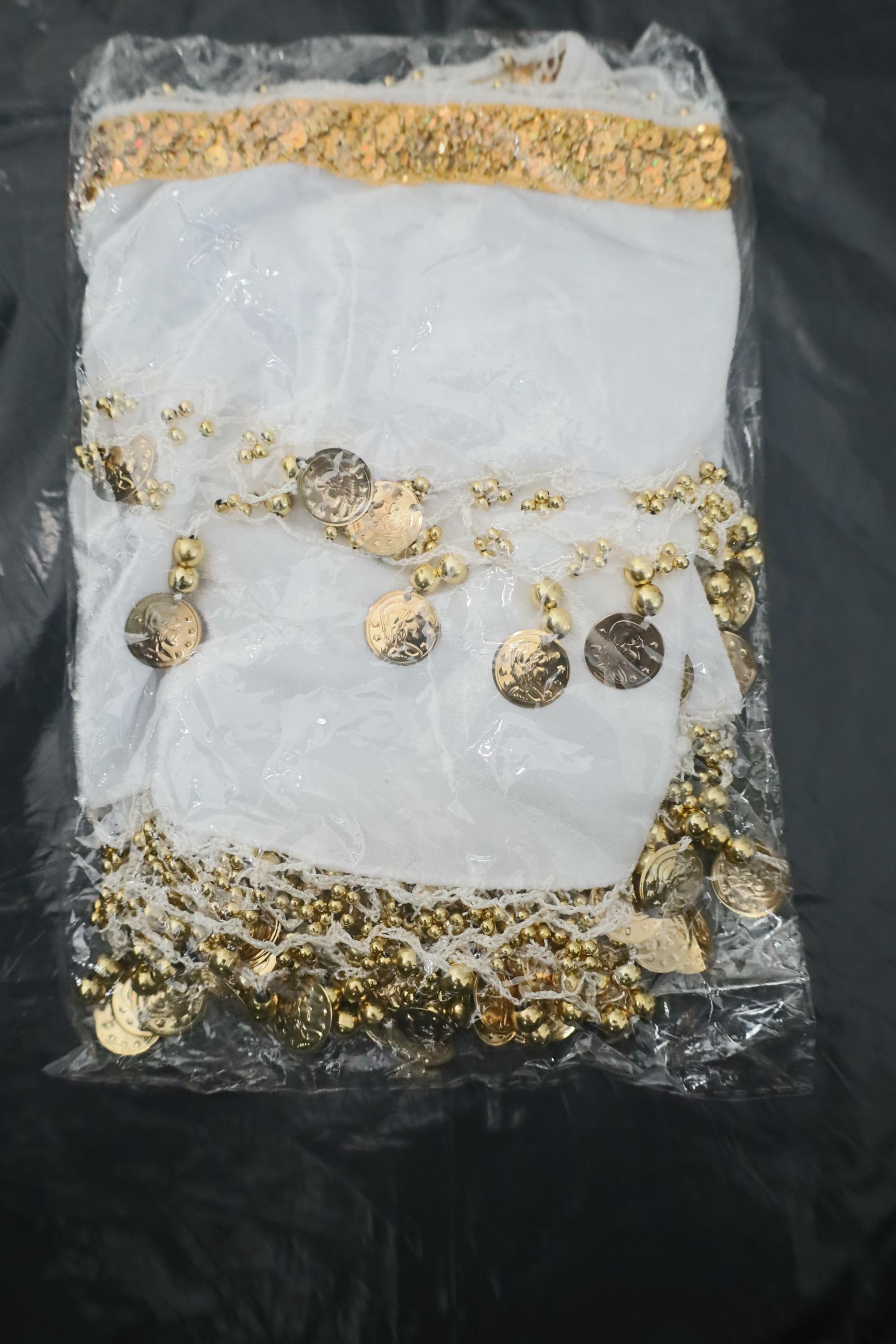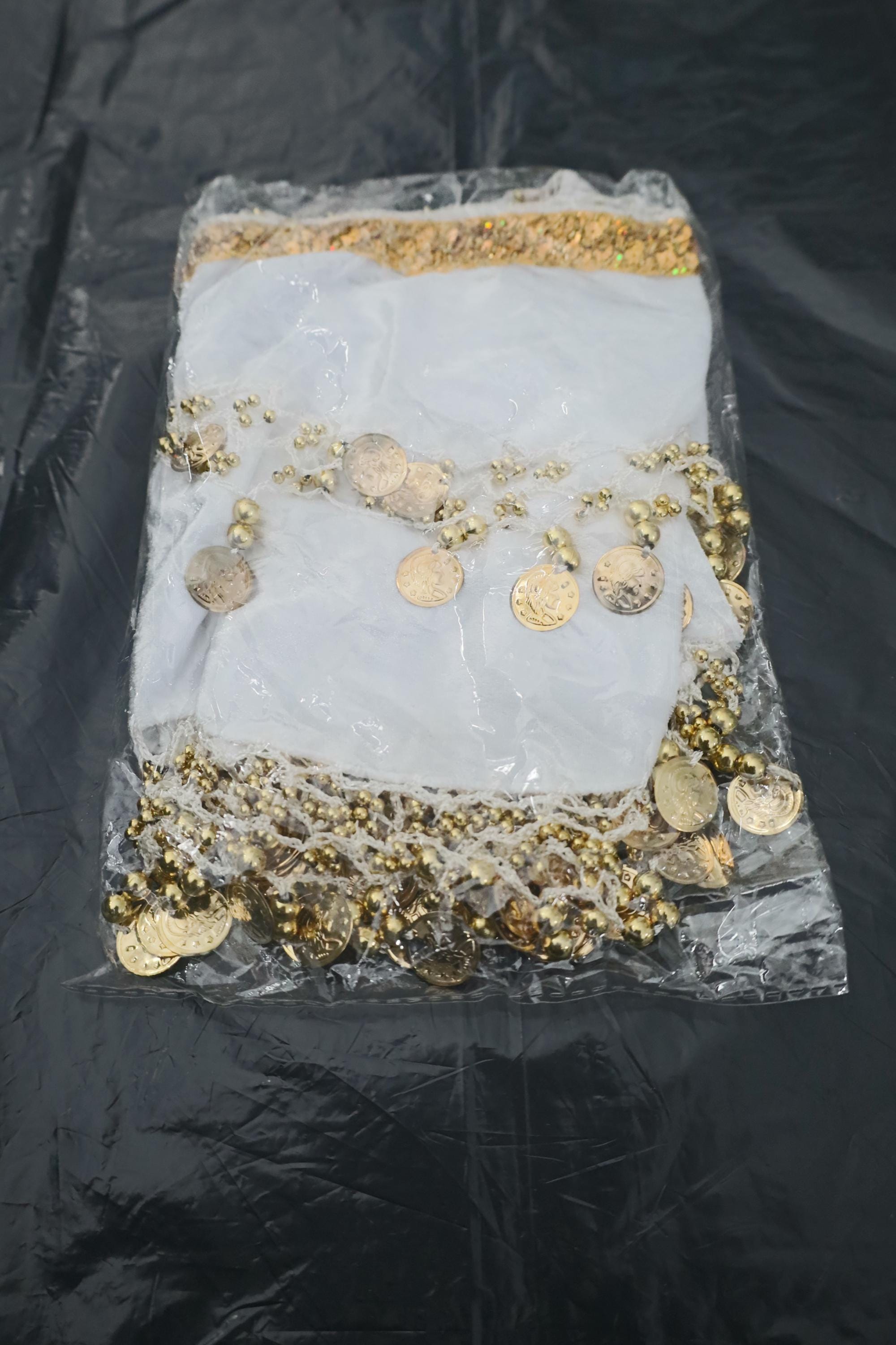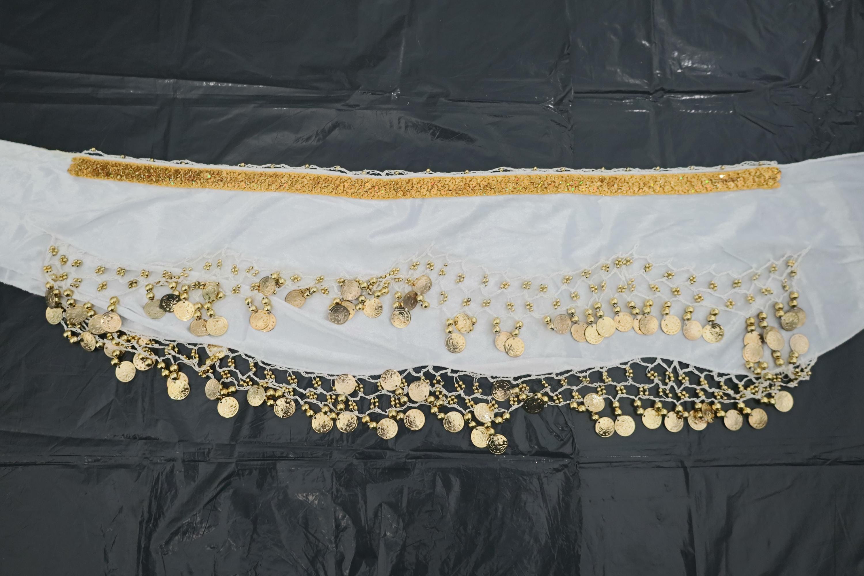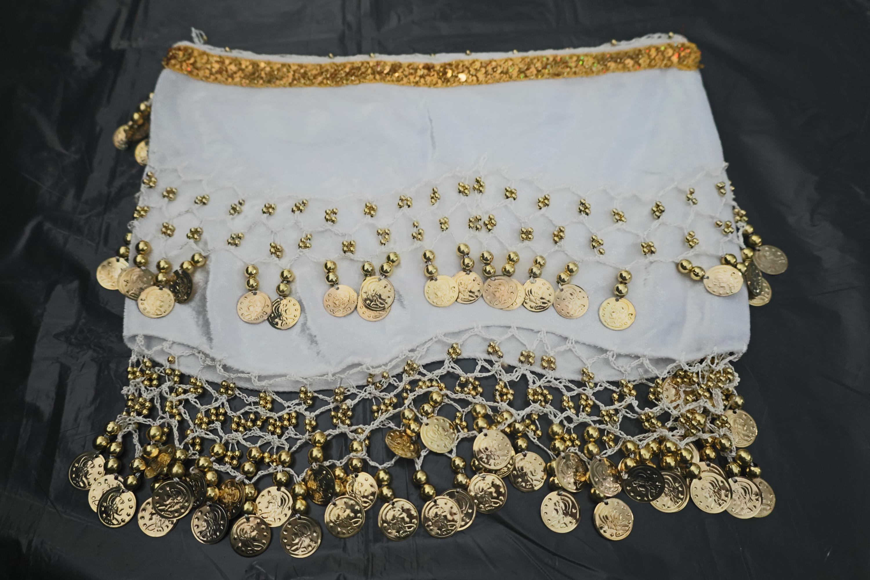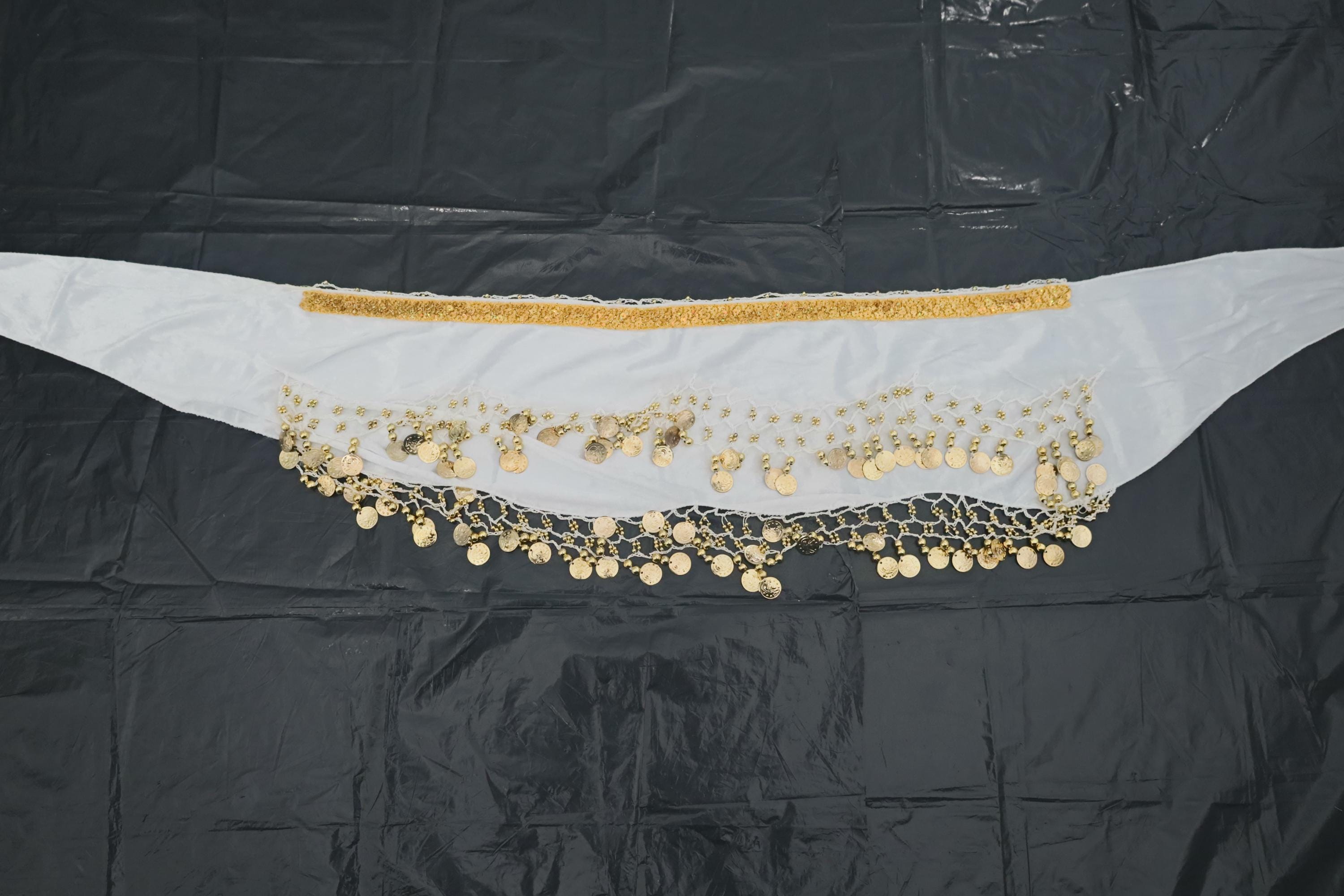 This dance shawl is a truly charming and elegant piece, ideal for enhancing an oriental or belly dance outfit. Crafted from sumptuous, bright snow-white velvet, it boasts a soft, shiny texture that beautifully captures the light with every movement.